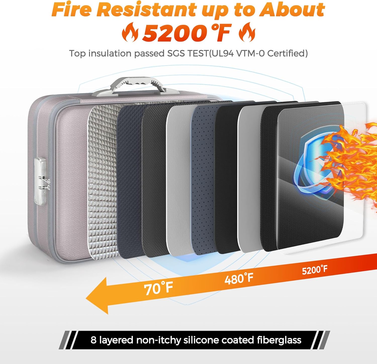 - Fireproof Waterproof Document Box:The upgraded document organizer is made of silicone coated material and aluminum foil, SGS (UL94 VTM-0) certified to withstand flames up to 5200℉. Its 8-layer fireproof, heat-insulating structure slows heat transfer, provide safe for documents. The water-resistant zipper on the fire proof box guards against rain, moisture, and splashes for added peace of mind.