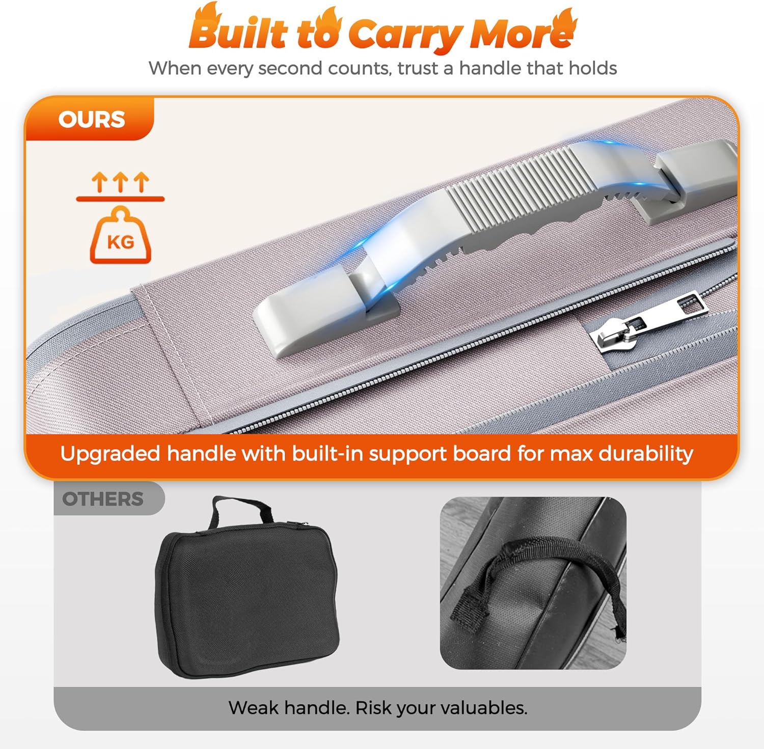 - Reliability in the Details: Made with 8 layers of fire-resistant insulation, our fireproof file organizer offers heat protection for your valuables—legal documents, credit cards, laptops, birth certificates, and more. Unlike flimsy alternatives, our advanced fireproof box has a reinforced built-in handle that won't tear under pressure and a luggage strap that slides over suitcase handle, perfect for camping, travel, and outdoor use.