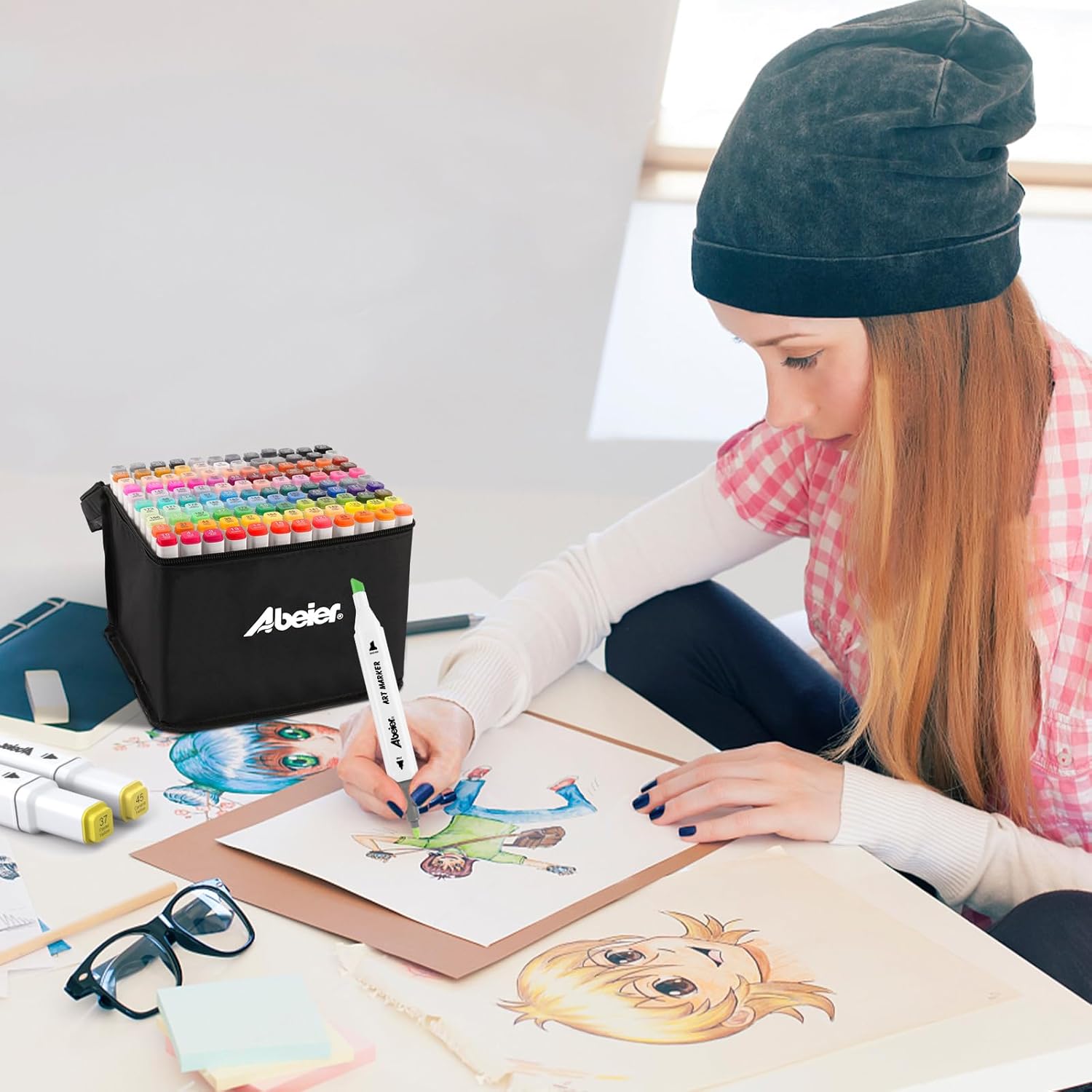 ABEIER Alcohol Markers, 168 Colors Dual Tip (Fine & Chisel) Art, Coloring Markers for Adults Kid, Ideal for Book Drawing Sketching Painting, Card Making, Includes 1 Colorless Blender