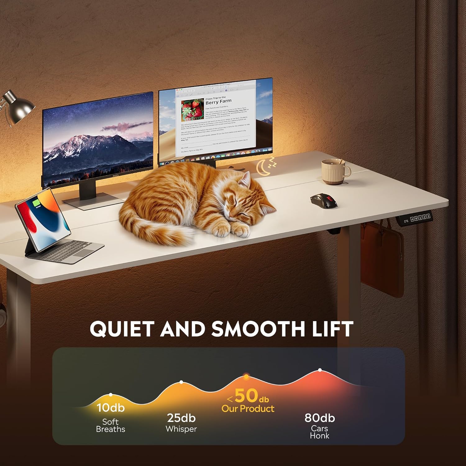 - ăQuite & Smooth Height AdjustmentsăTri-motor system delivers whisper-quiet (<50dB) height transitions (28.35"-46.45") in seconds, eliminating manual adjustments and prevent desktop tilting. Standing desk adjustable height perfected for ergonomic shifts, ensuring buttery-smooth operation whether sitting or standing.