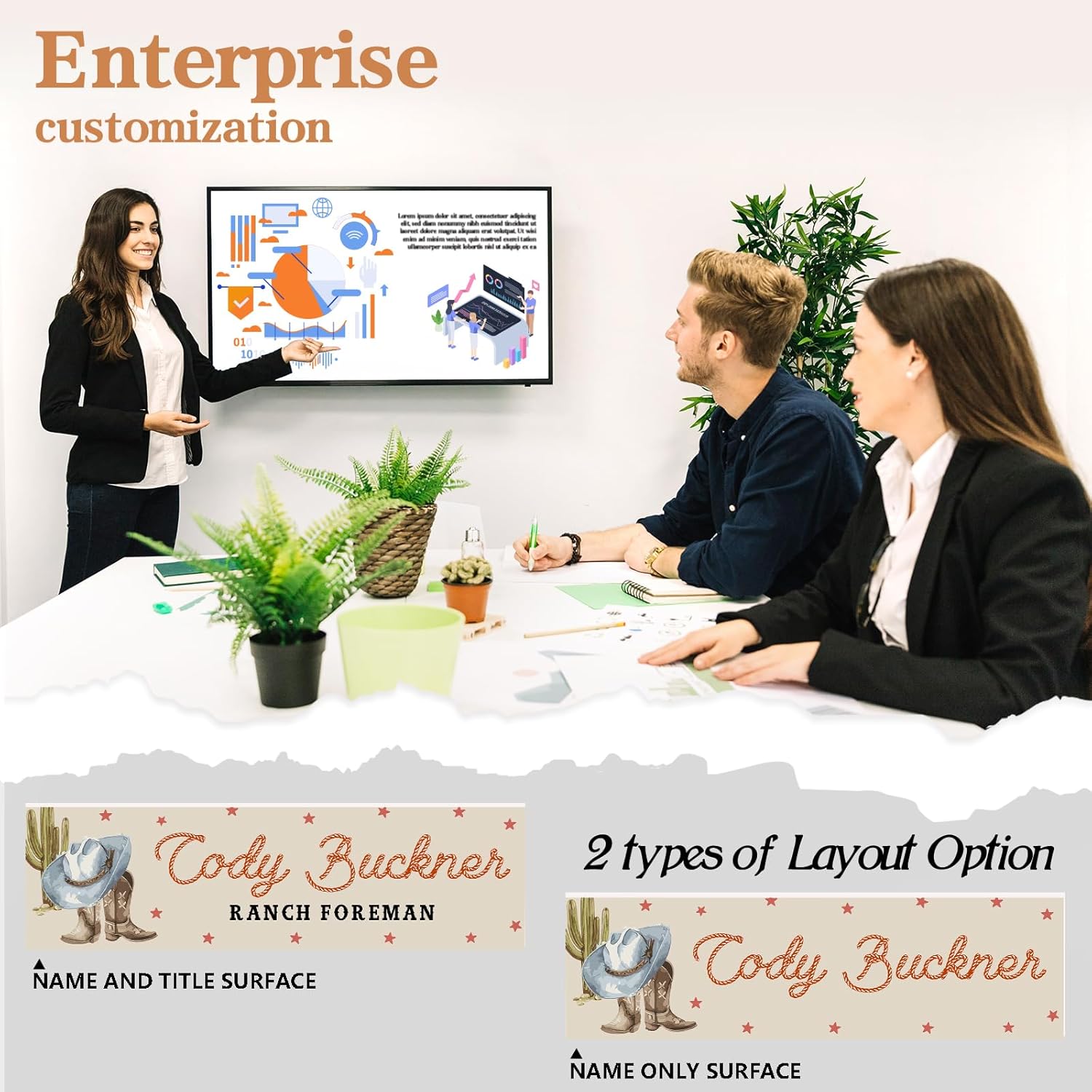 - 【Personalized Name Plate for Desk】Create a unique desk name plates in just four easy steps. We craft bespoke nameplates featuring your name and title, with options to choose your preferred style, design, and front. You can even upload your photo and logo for a truly personalized nameplate. Our talented design team is dedicated to bringing your vision to life. Elevate your office with a professional and unique nameplate that reflects your style.