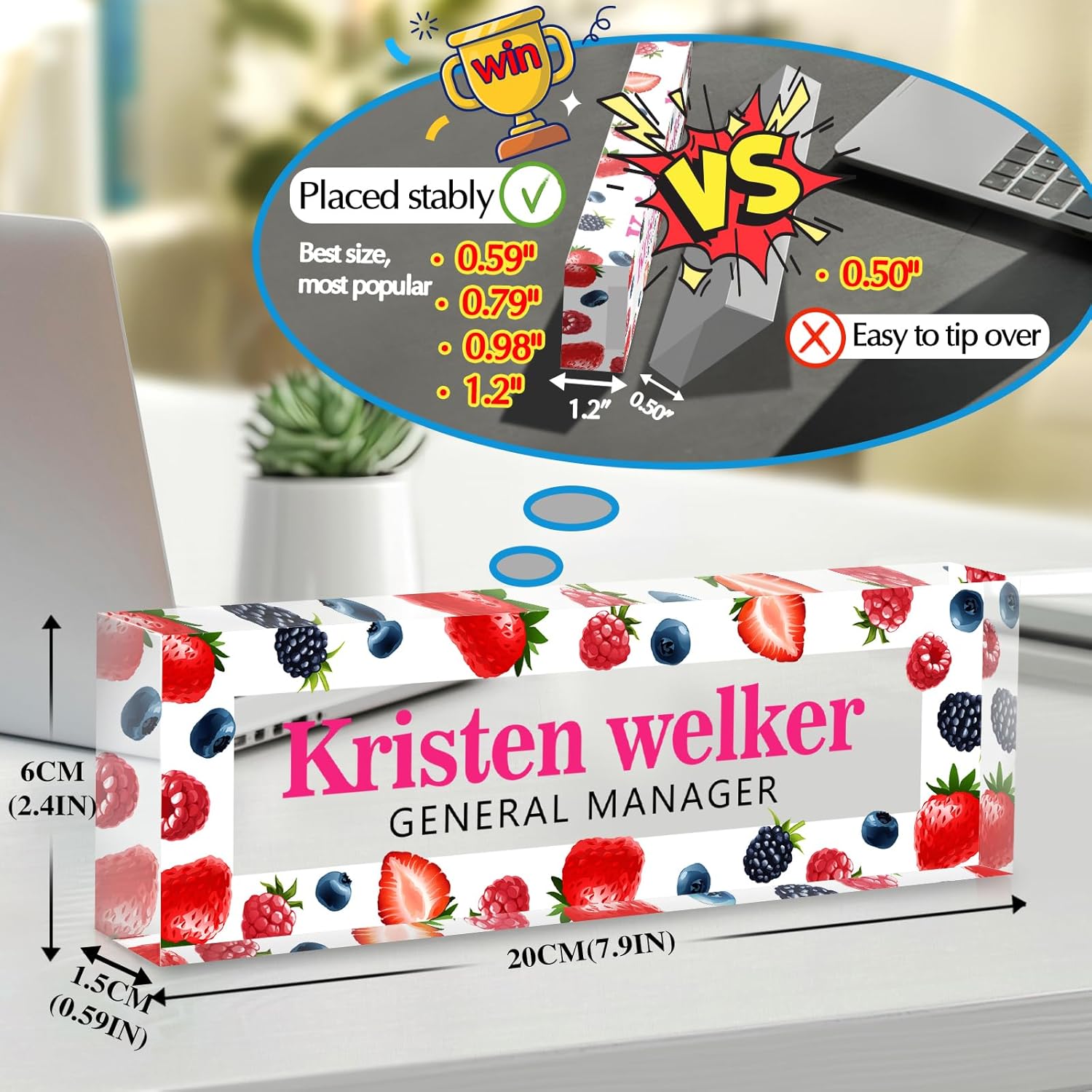 - 【Thickness upgraded to 0.79-1.18 inches】 According to market research, most people who received 0.59-inch thick acrylic nameplates would have problems with instability and easy to tip over, which would bring a terrible shopping experience. From the customer's perspective, we pause Selling a 0.59-inch nameplate, we provide 0.79-inch/0.98-inch/1.18-inch thick acrylic for selection. The 1.18-inch size is the most popular gift size, More fashionable and atmospheric, We aim to bring your vision to life!