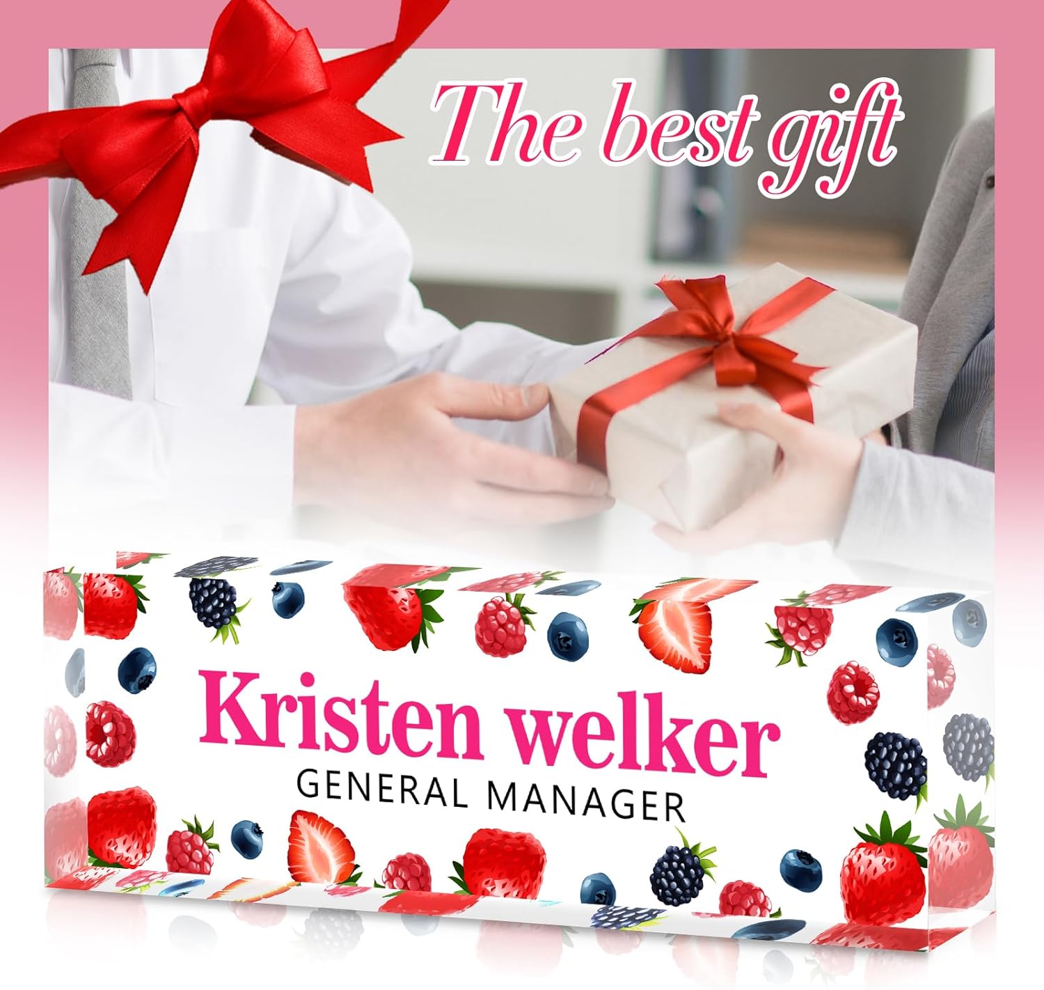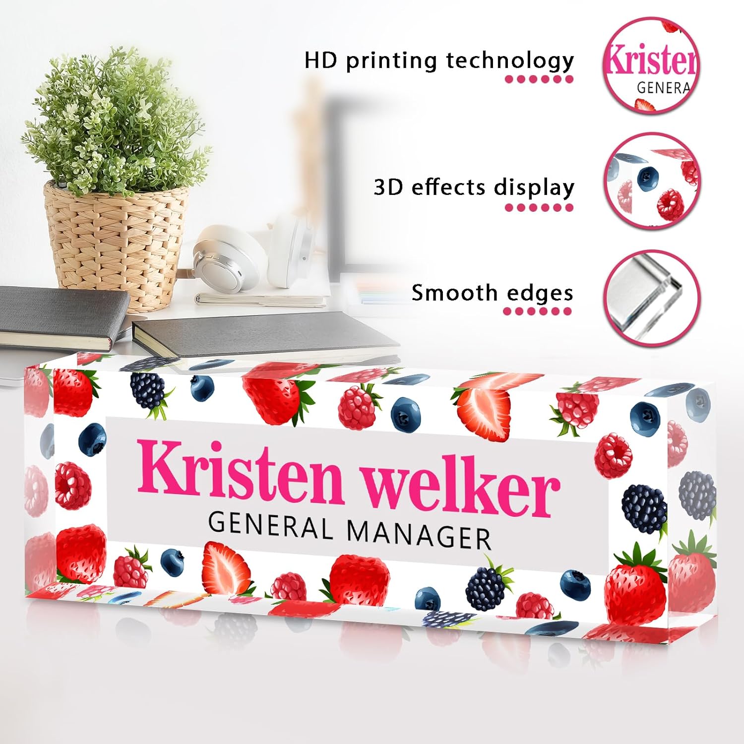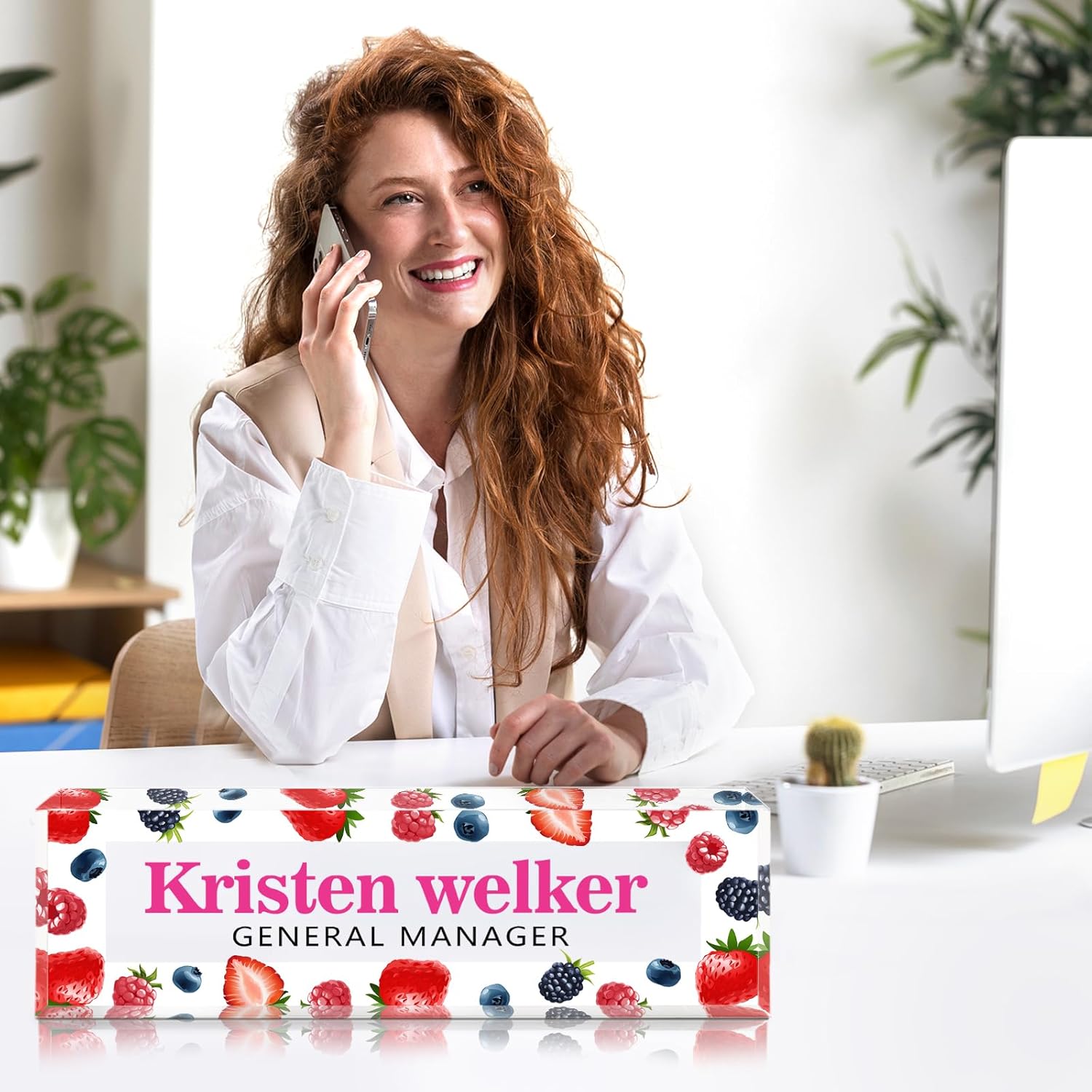Personalized Name Plate for Desk - Custom Engraved Name Plates for Man - Boss Day Gifts for Boss - Acrylic Office Decor Appreciation Gifts for Teacher Nurse Coworker Social Worker (Berries)