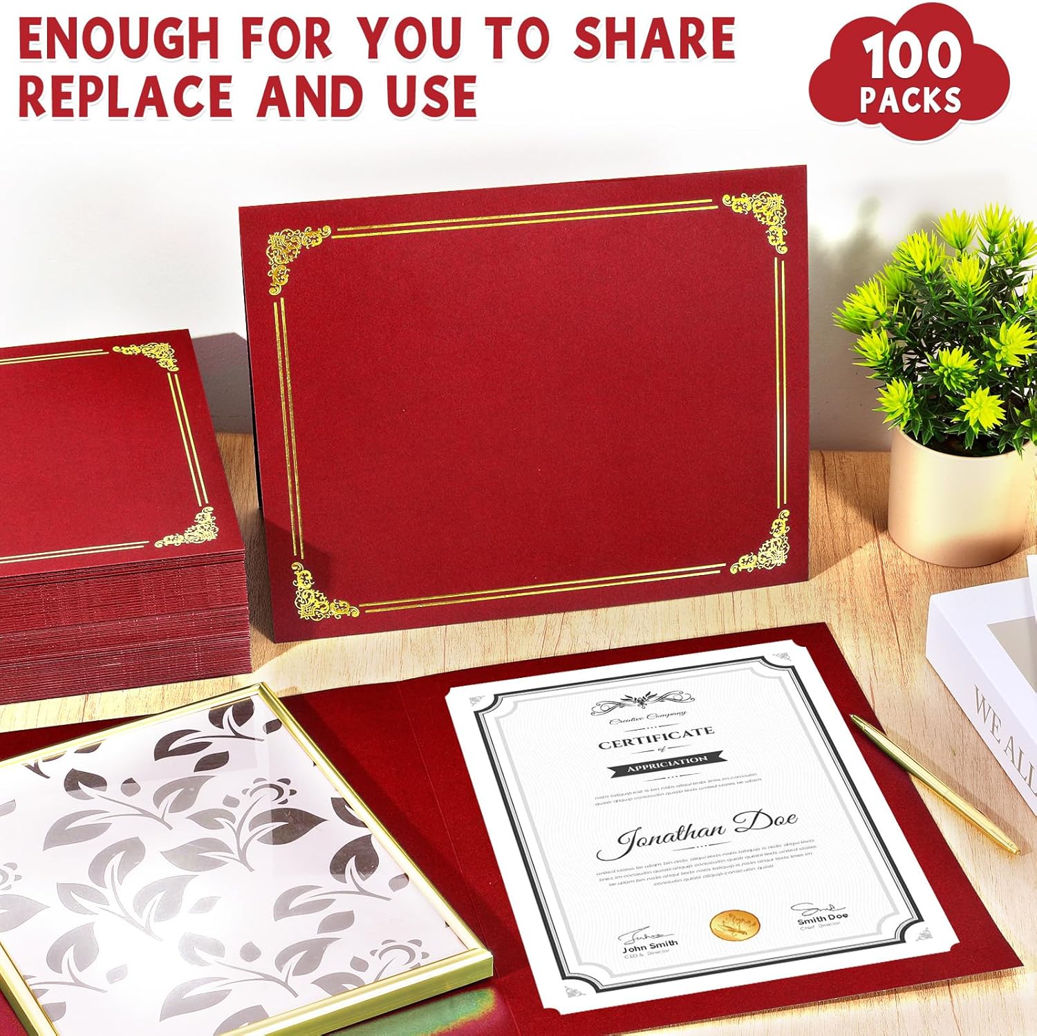 - Package includes: Youโll get 100pcs of red certificate holders for 8.5 x 11 inches certificates offer elegant presentation and protection. These diploma holders are ideal for issuing certificates of appreciation, high school diplomas, important letters, business documents, autographed photos, and letter-sized cardstock. Reliable packaging protection prevents the certificate covers from bending and creases during transportation