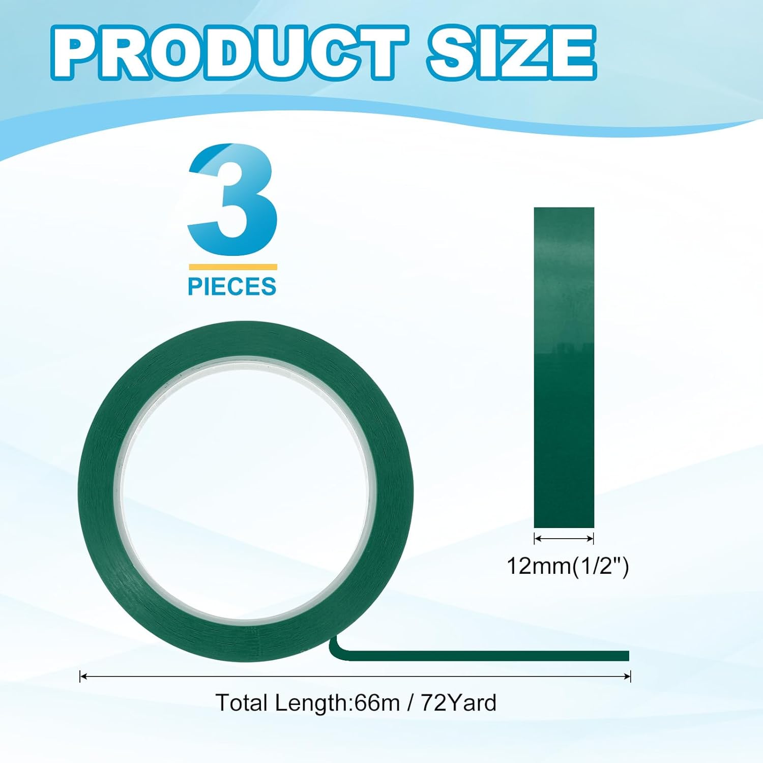 MECCANIXITY Whiteboard Tape 1/2" x 72 Yard Pinstripe Graphic Chart Line Grid Marking Tapes for Classroom Office Dry Erase Board Art, Green, Pack of 3