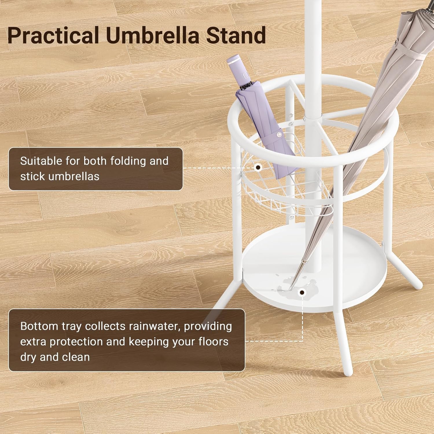 - Stylish & Functional: This coat rack with umbrella holder not only serves as a chic coat hanger stand but also enhances any space. Available in three elegant colors, it seamlessly fits into your hallway, foyer, closet, bedroom, office, or any corner needing an organizational touch