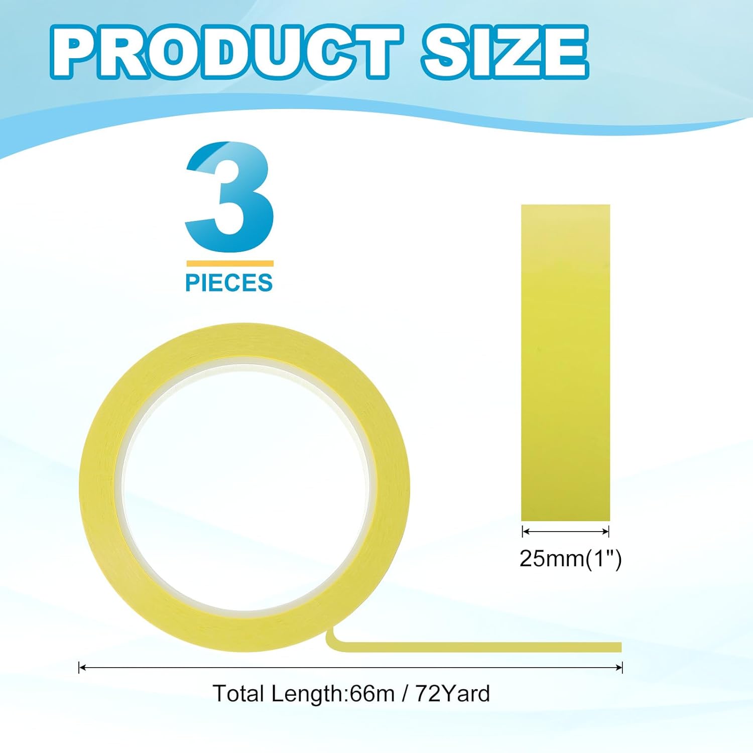 MECCANIXITY Whiteboard Tape 1" x 72 Yard Pinstripe Graphic Chart Line Grid Marking Tapes for Classroom Office Dry Erase Board Art, Light Yellow, Pack of 3