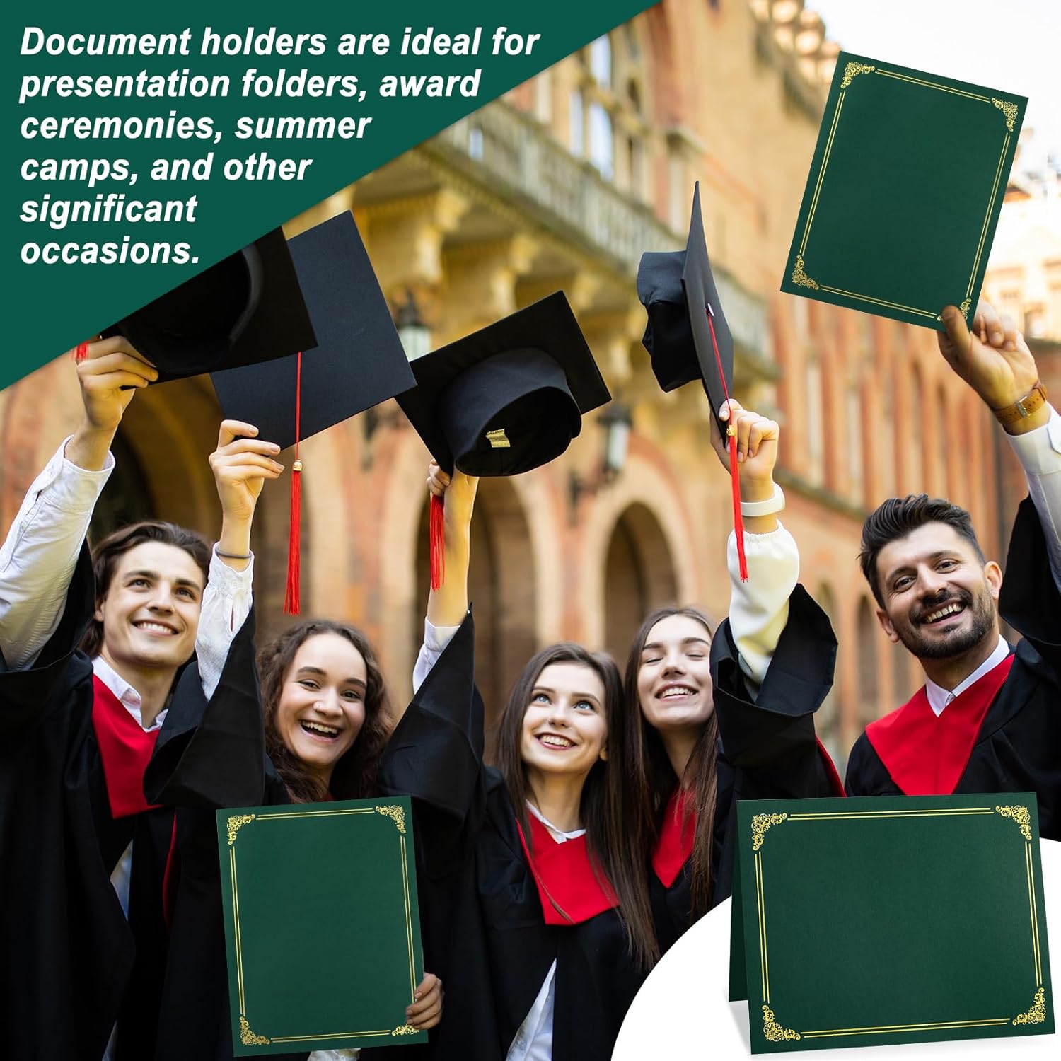 - Delicate design: The green front is elegantly trimmed with gold foil, while the back remains pure green, presenting a formal and easily distinguishable front and back. Document holders are ideal for presentation folders, award ceremonies, summer camps, and other significant occasions, making your certificates look professional and delicate.