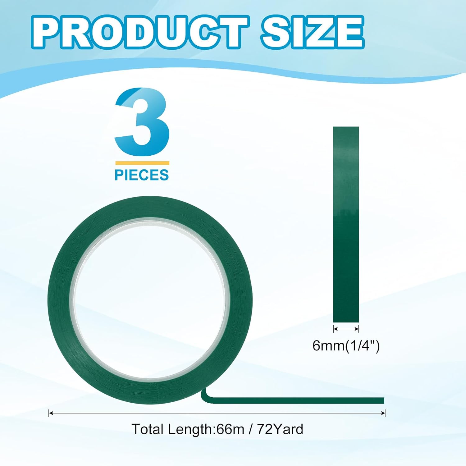- This pinstripe tape provide here is in the size of: Width: 6mm(1/4"), Length: 66m(72 Yard); In the package of: 3 x Chart Line Tape