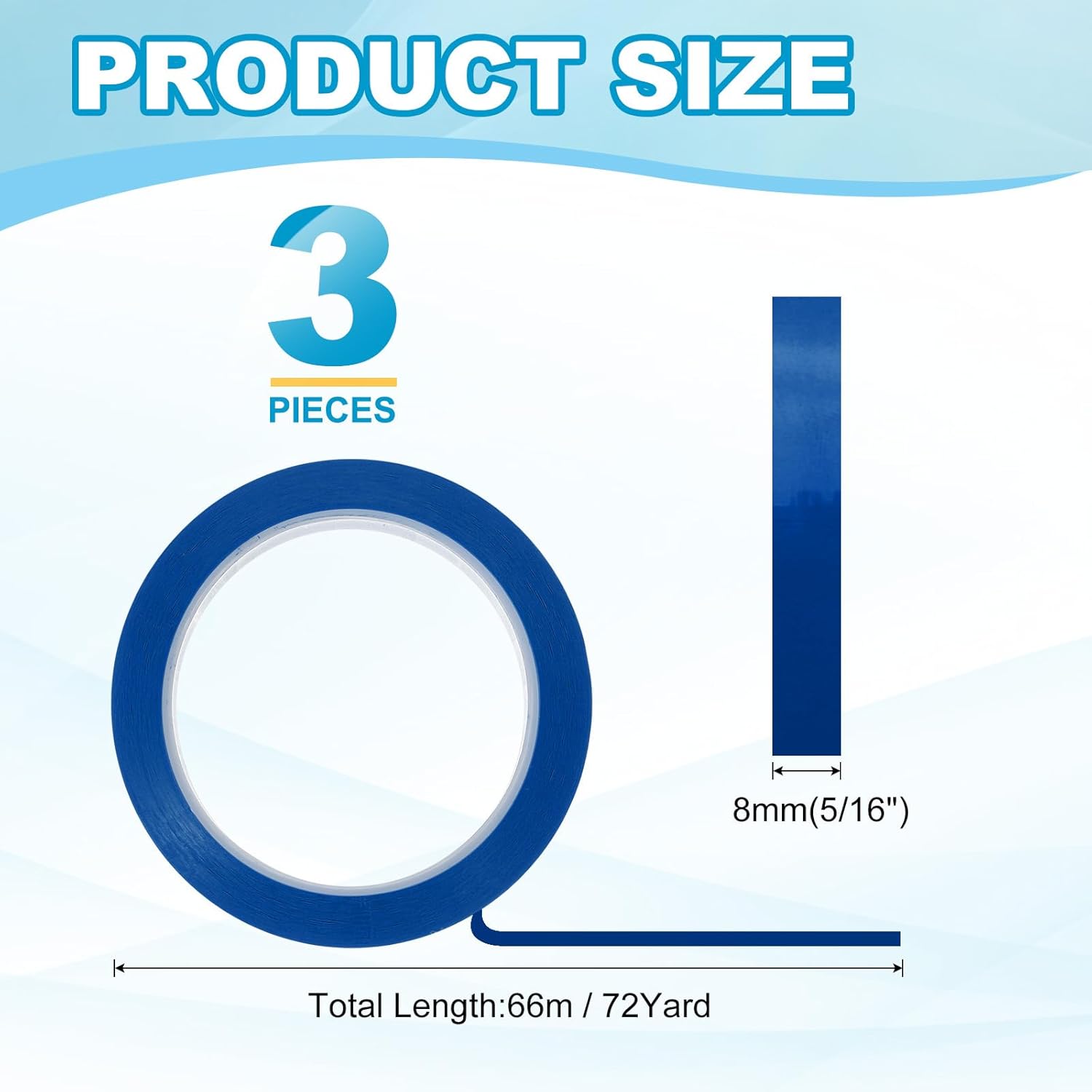 MECCANIXITY Whiteboard Tape 5/16" x 72 Yard Pinstripe Graphic Chart Line Grid Marking Tapes for Classroom Office Dry Erase Board Art, Blue, Pack of 3