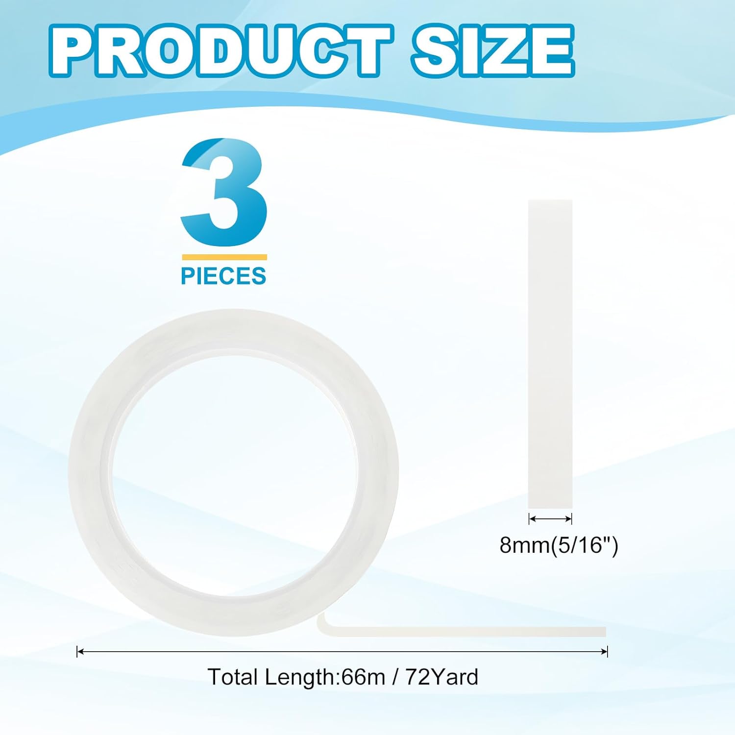 MECCANIXITY Whiteboard Tape 5/16" x 72 Yard Pinstripe Graphic Chart Line Grid Marking Tapes for Classroom Office Dry Erase Board Art, Clear, Pack of 3