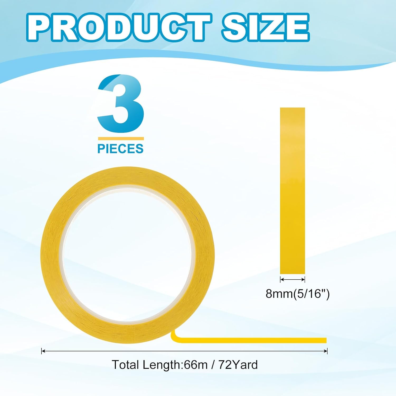 MECCANIXITY Whiteboard Tape 5/16" x 72 Yard Pinstripe Graphic Chart Line Grid Marking Tapes for Classroom Office Dry Erase Board Art, Dark Yellow, Pack of 3