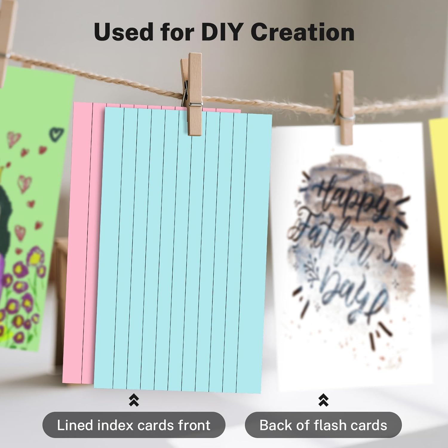 - Single Sided Printing Design For Organized Creativity: The narrow ruled colored flash cards is 9/32'' (7mm). Its front can be used to write blessings, host's hand card, baby learning words, textual records. Back blank side transforms into DIY: Sketch birthday cards, greeting card, sketches, diagrams and so on.