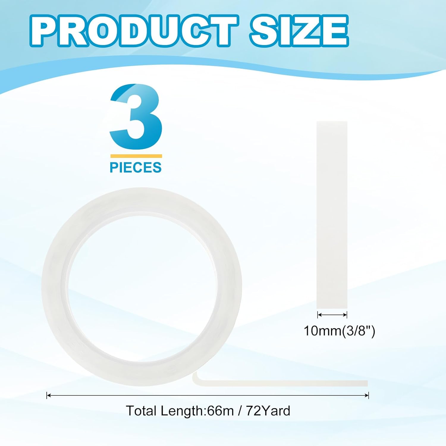 MECCANIXITY Whiteboard Tape 3/8" x 72 Yard Pinstripe Graphic Chart Line Grid Marking Tapes for Classroom Office Dry Erase Board Art, Clear, Pack of 3