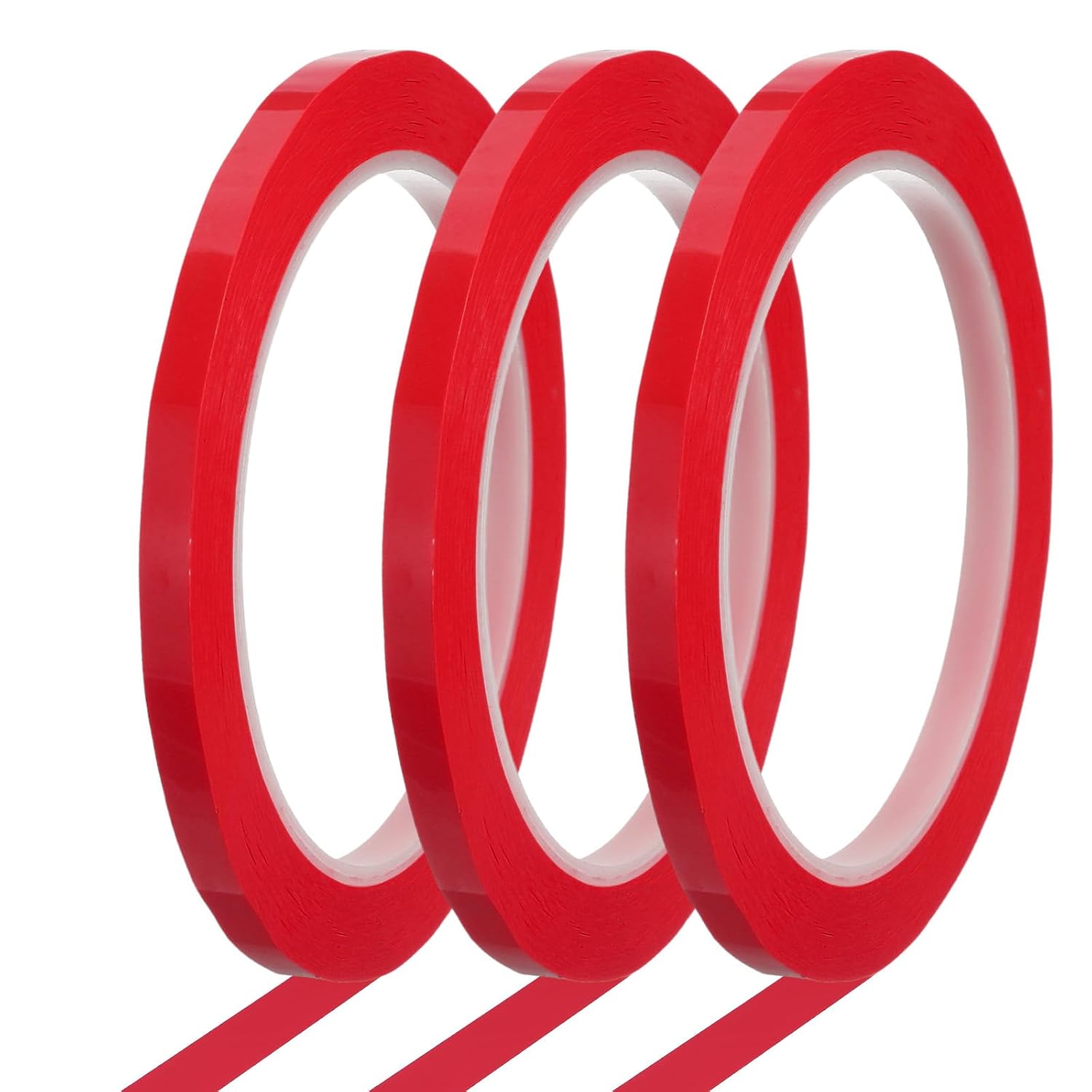 MECCANIXITY Whiteboard Tape 1/4" x 72 Yard Pinstripe Graphic Chart Line Grid Marking Tapes for Classroom Office Dry Erase Board Art, Red, Pack of 3