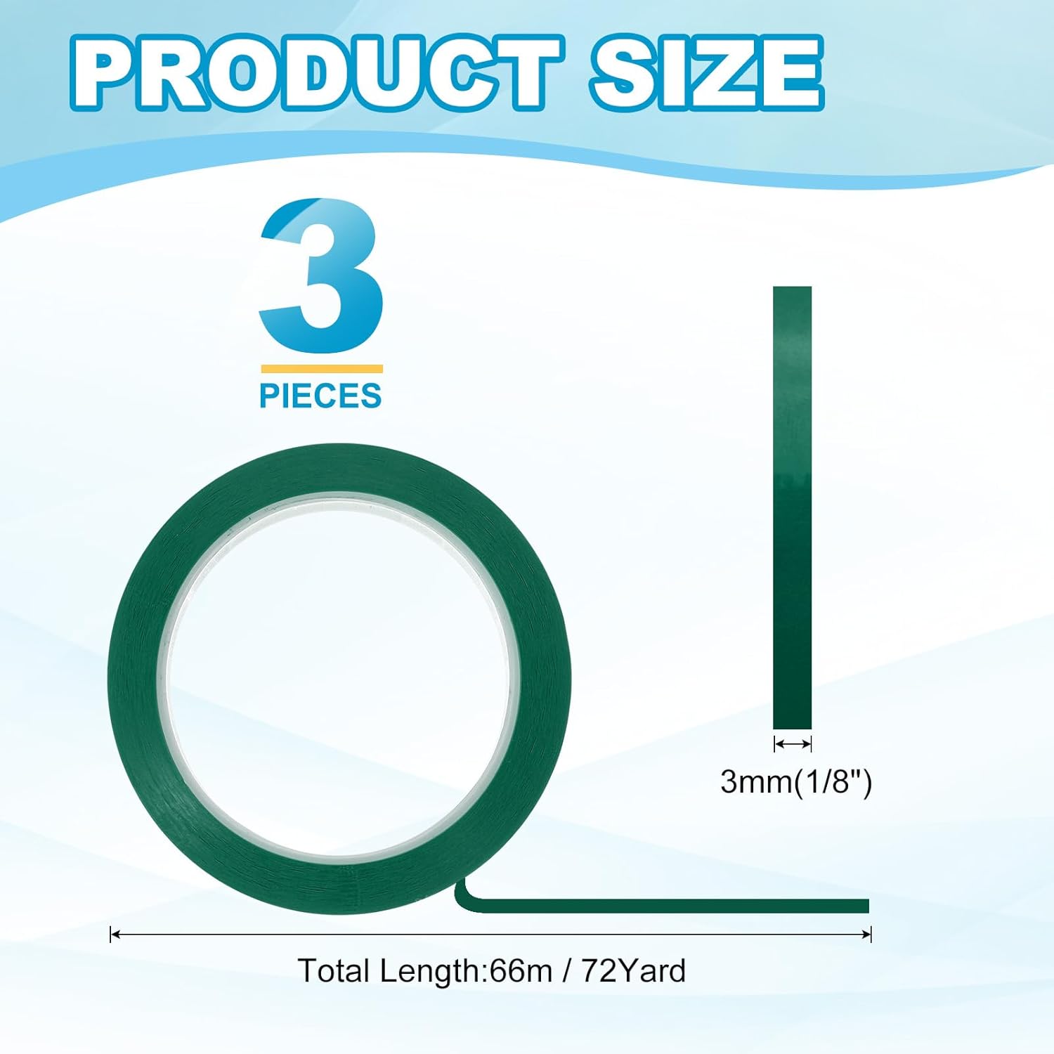 - This pinstripe tape provide here is in the size of: Width: 3mm(1/8"), Length: 66m(72 Yard); In the package of: 3 x Chart Line Tape