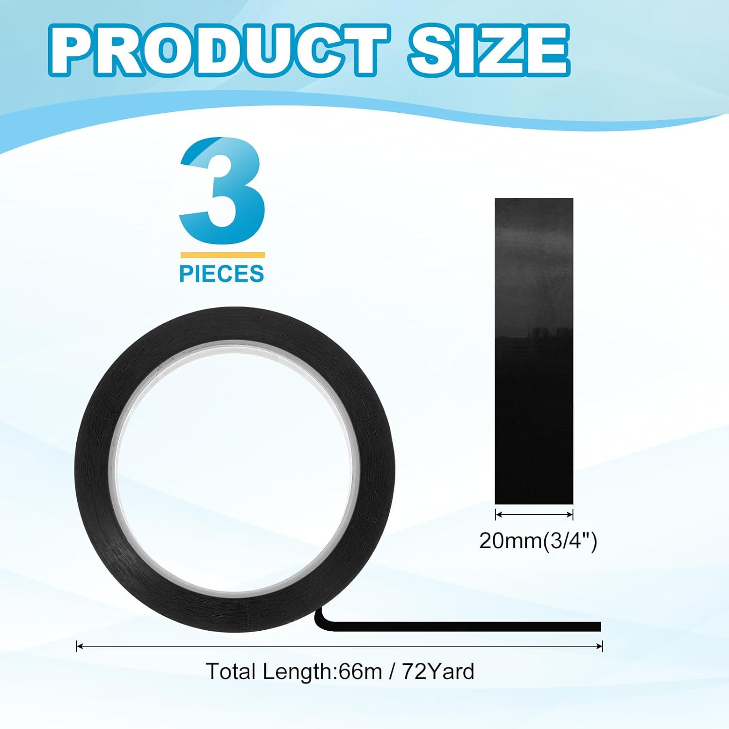 MECCANIXITY Whiteboard Tape 3/4" x 72 Yard Pinstripe Graphic Chart Line Grid Marking Tapes for Classroom Office Dry Erase Board Art, Black, Pack of 3