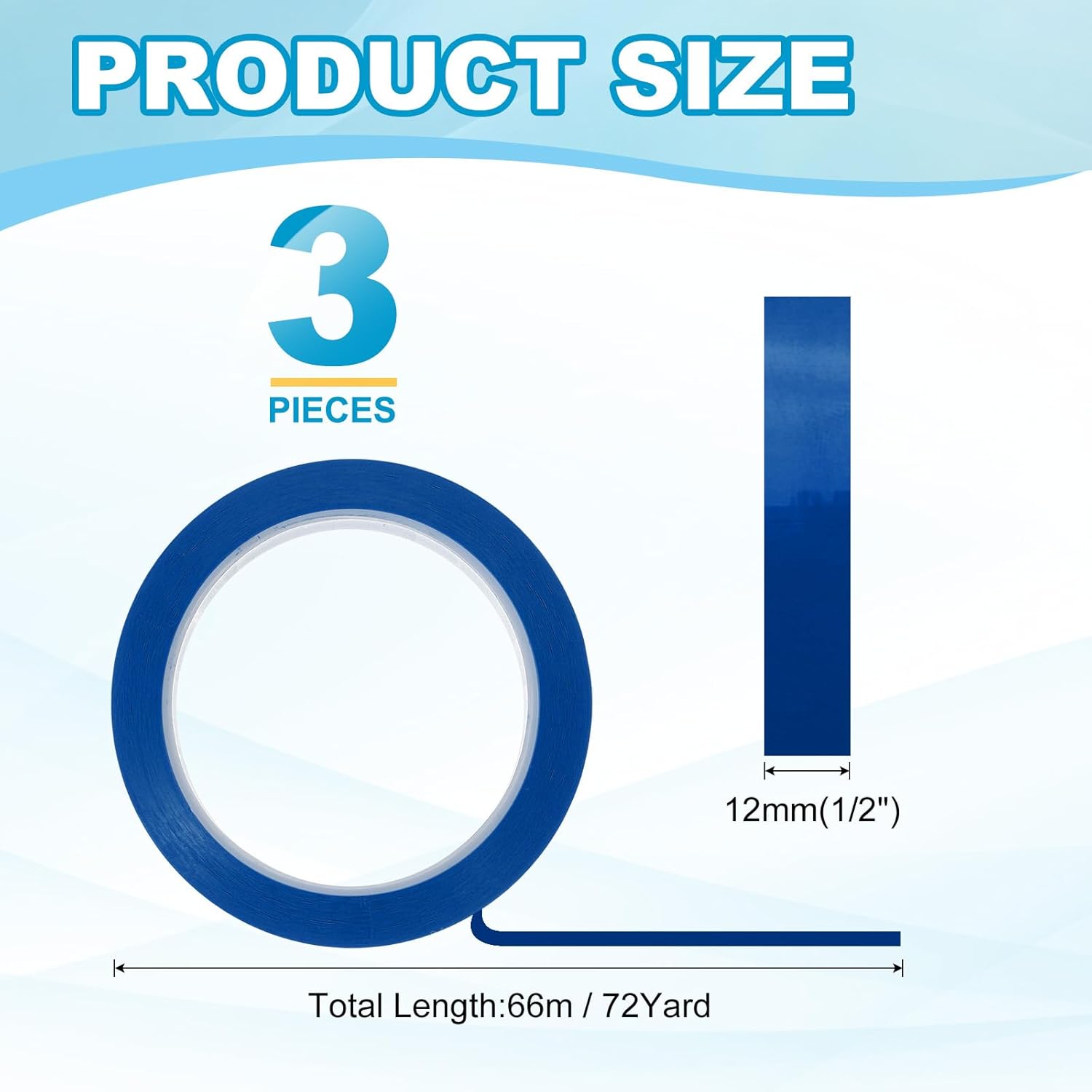 MECCANIXITY Whiteboard Tape 1/2" x 72 Yard Pinstripe Graphic Chart Line Grid Marking Tapes for Classroom Office Dry Erase Board Art, Blue, Pack of 3