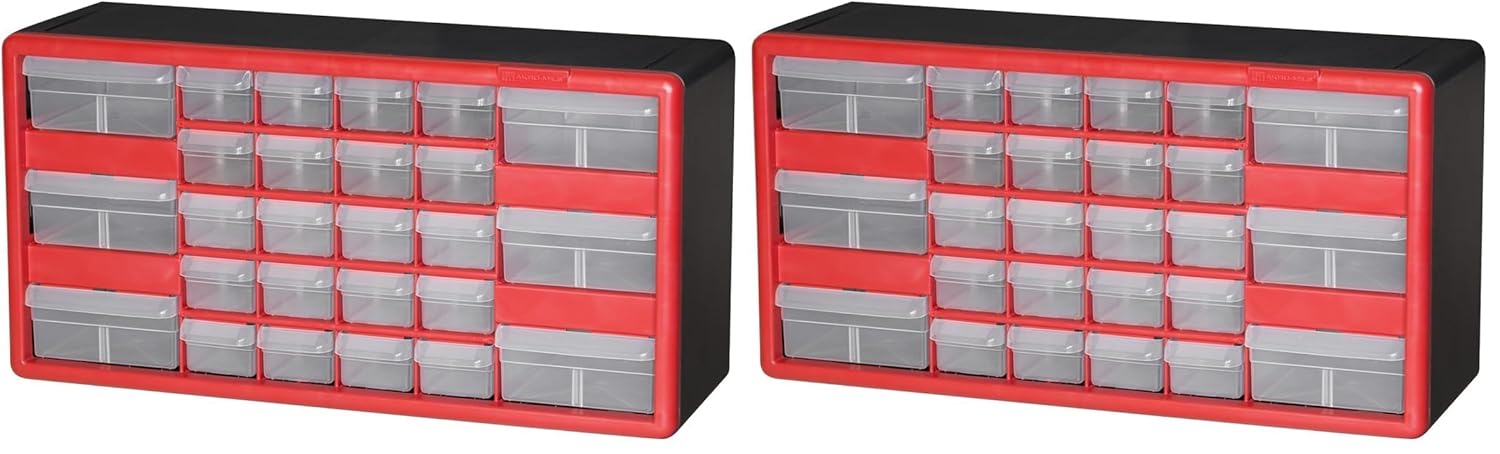 Akro-Mils 26-Drawer Plastic Drawer Storage Cabinet for Garage Organization, Bead Organizer, Building Bricks Storage, Teacher Toolbox, Makeup Organizer, 20-Inch W x 6-Inch D x 10-Inch H, 10126 Red