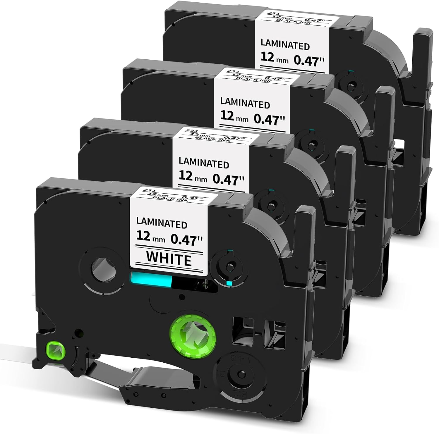 Colorty Label Maker Tape Refill Compatible with TZ TZe Tape 12mm 0.47 Laminated White TZe-231 TZe231 Replace for Brother P Touch Label Tape PT-D210 D220 1180 1280 1750 2030, 1/2" (12 mm x 8m, 4 Pack