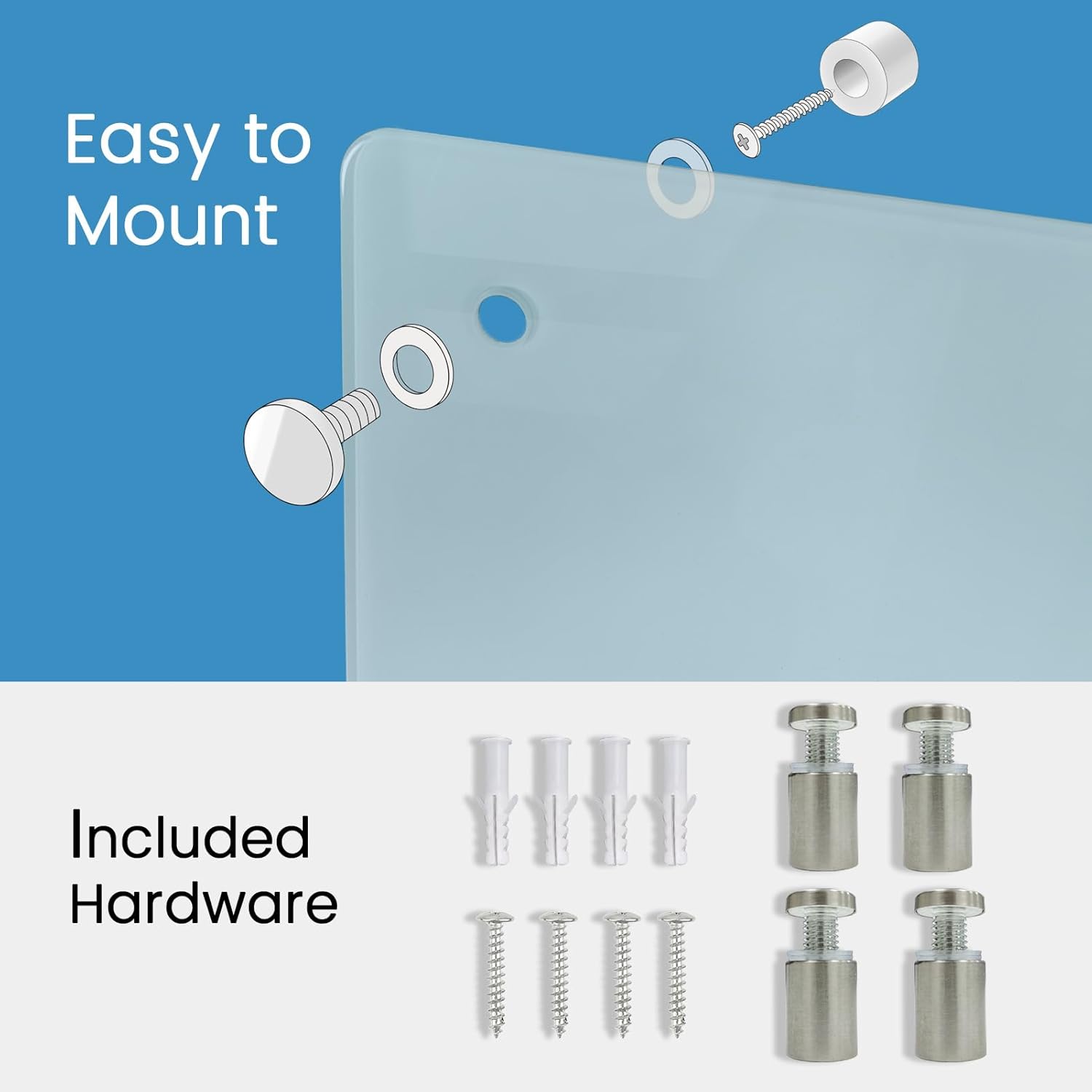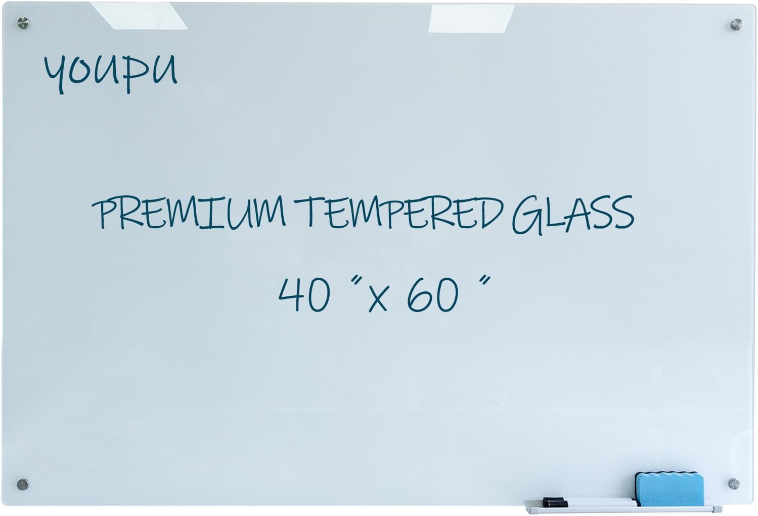 Magnetic Glass Writeboard 40"x60" Premium Tempered Dry Erase Boards Wall Mounted Frameless Whiteboard Bulletin Message Boards (White)