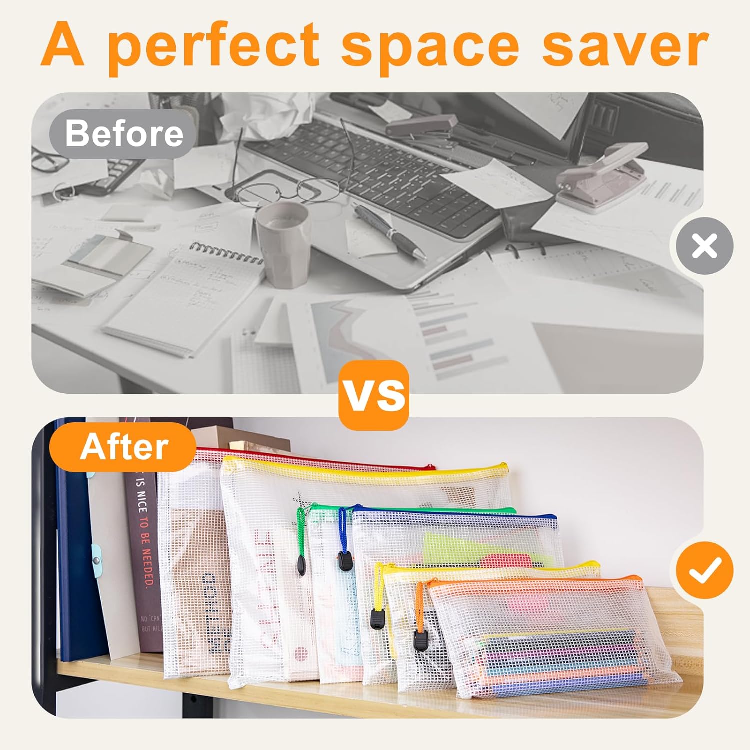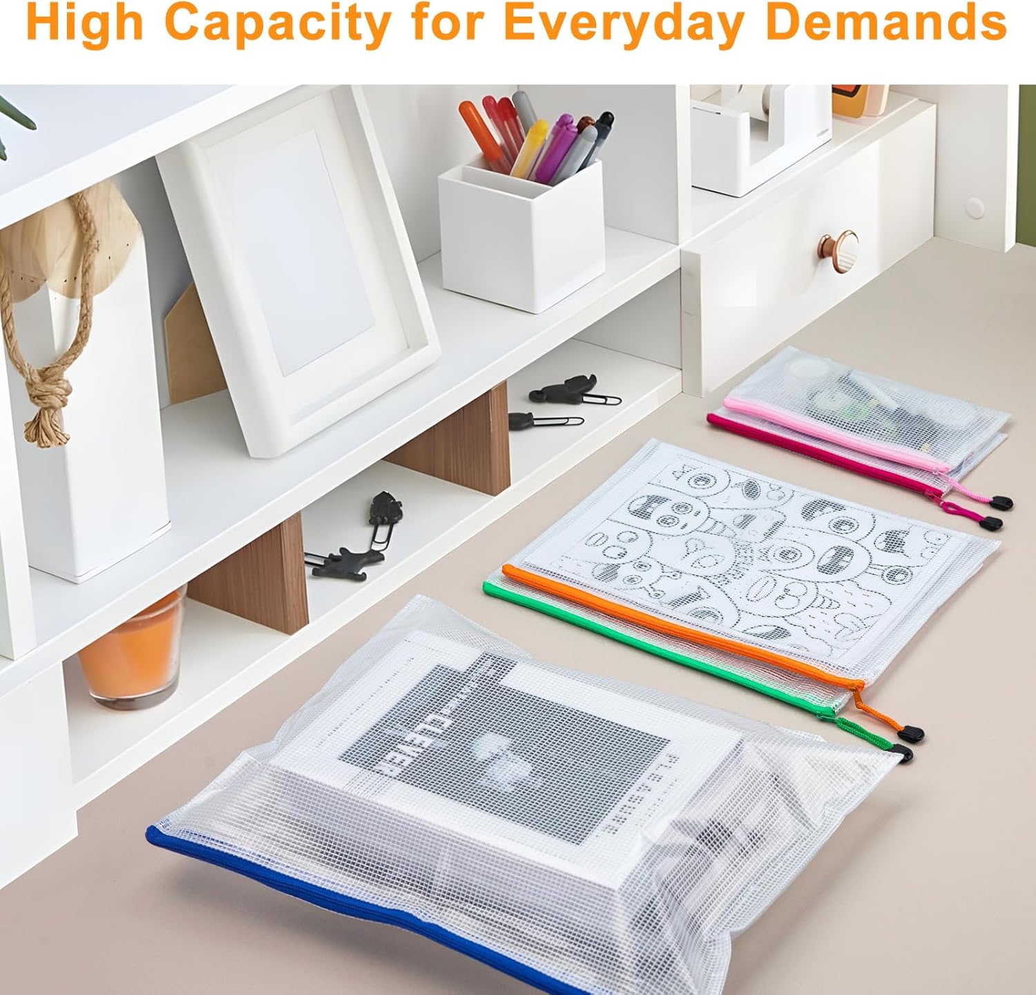64Pack Mesh Zipper Pouch Bags, Waterproof A4 Letter Size Document Zipper Pouches for Storage, Teacher School, Toys, Puzzle, Office, 8 Colors