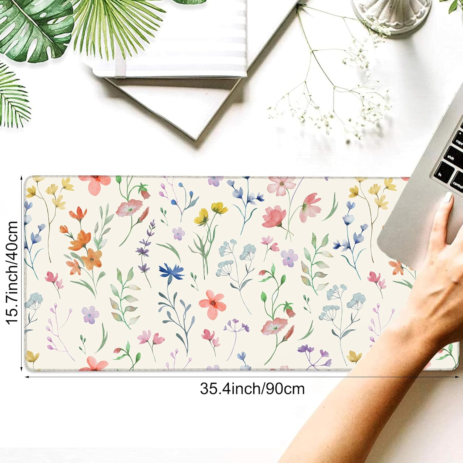 Desk Mat, Colorful Watercolor Floral Large Gaming Mouse Pad with Non-Slip Base Stitched Edges,Desk pad for Keyboard and Mouse Home Office 35.4"x15.7"