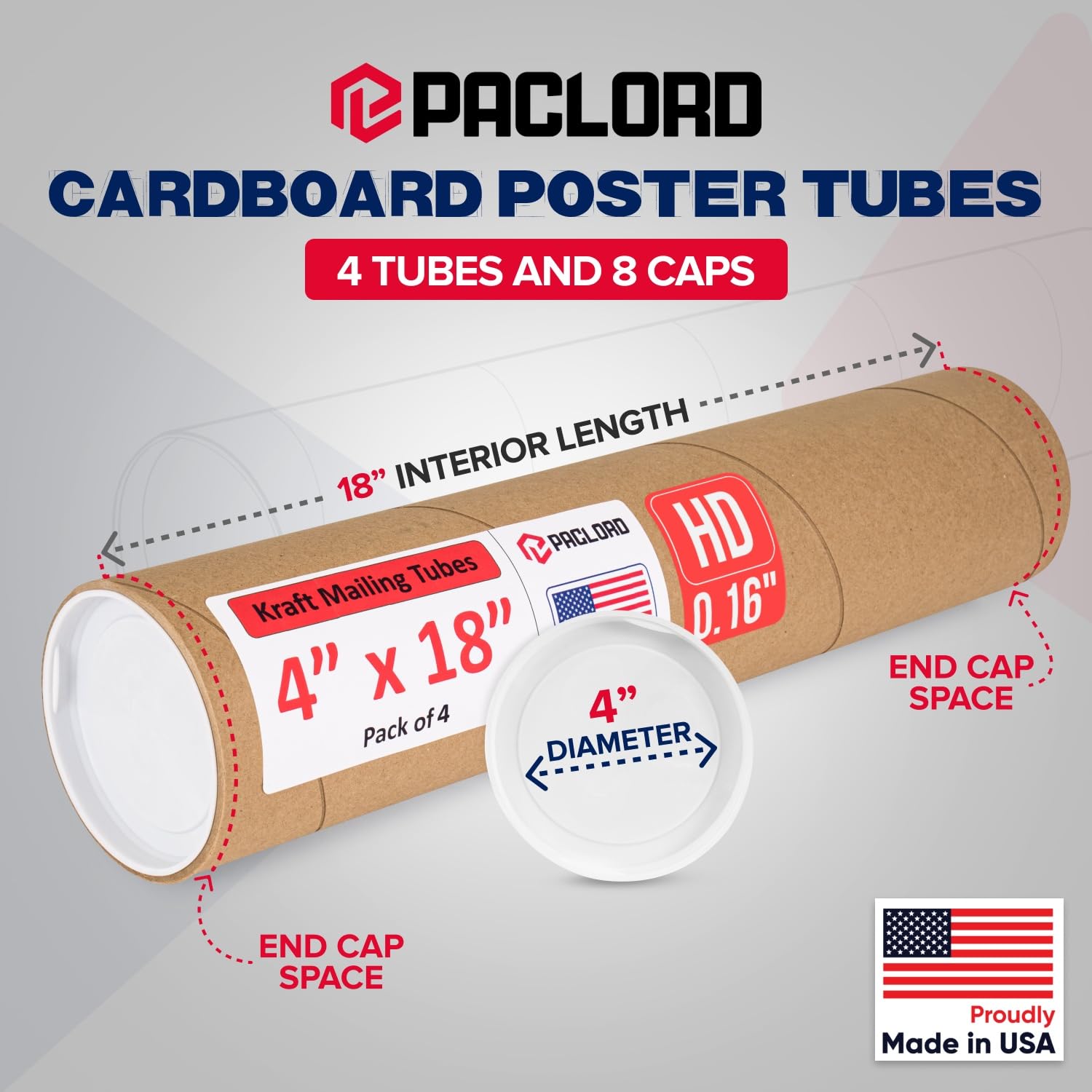 - Heavy-Duty Mailing Tubes: Paclord Reinforced Kraft Paper Mailing Tubes measure 18 inches high and 4 inches in diameter. These cardboard poster tubes are made of heavy-duty 0.16" thick brown kraft cardboard, 2x thicker than standard tubes. Designed to provide superior crush resistance for secure and reliable mailing