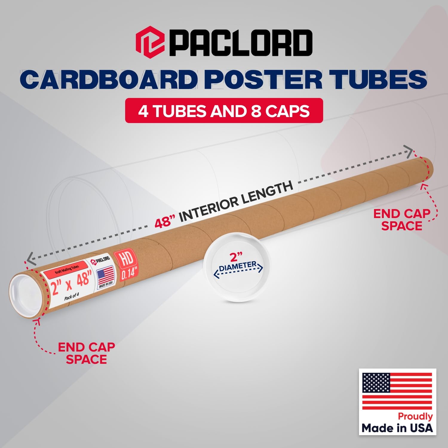 - Heavy-Duty Mailing Tubes: Paclord Reinforced Kraft Paper Mailing Tubes measure 48 inches high and 2 inches in diameter. These cardboard poster tubes are made of heavy-duty 0.14" thick brown kraft cardboard, 2x thicker than standard tubes. Designed to provide superior crush resistance for secure and reliable mailing