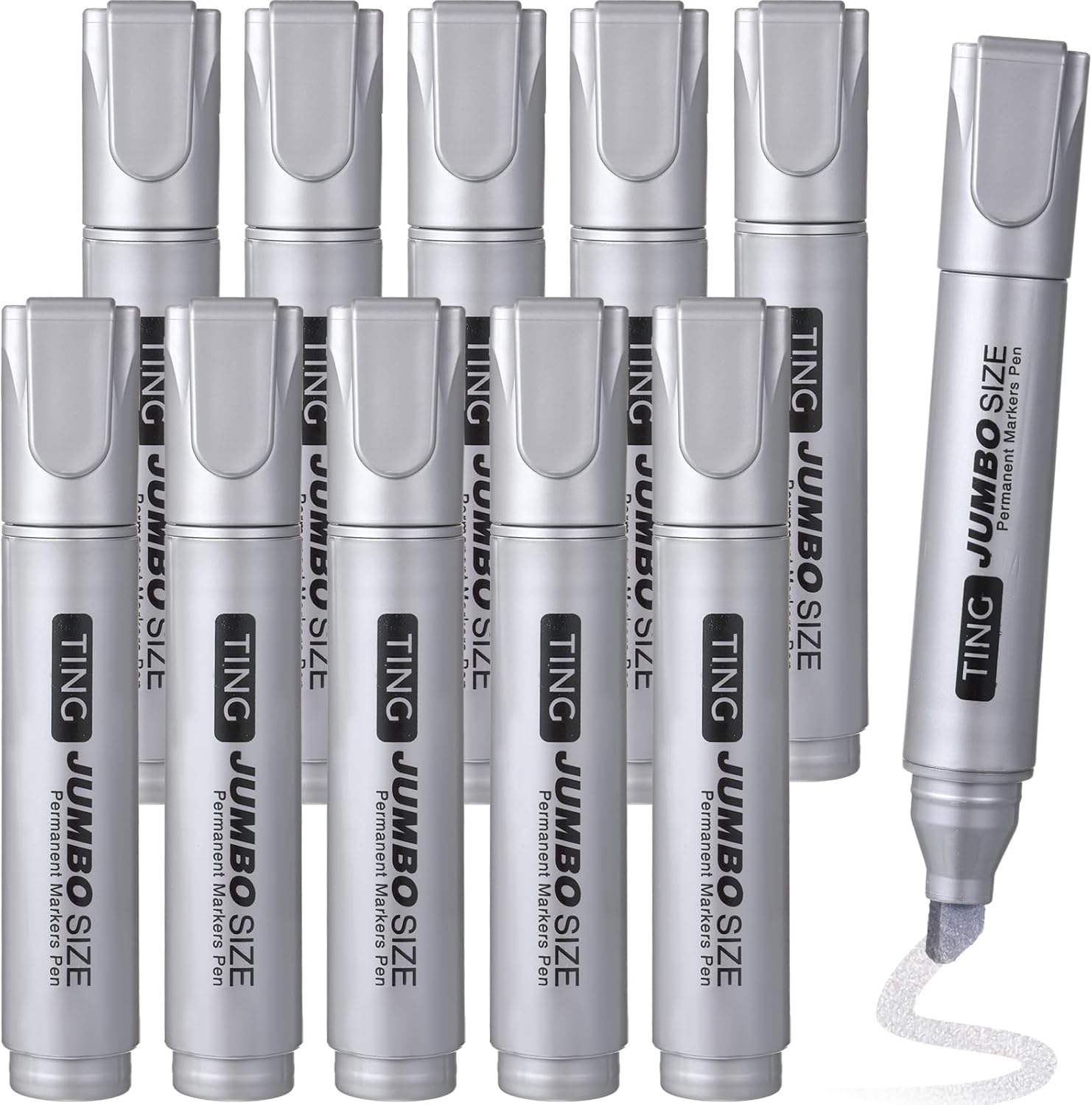 Fuutreo 10 Pack Jumbo Permanent Markers Bulk Large Chisel Tip Permanent Markers Quick Drying Waterproof Big Huge Poster Pens for Office, Logistics Company and More(Silver)
