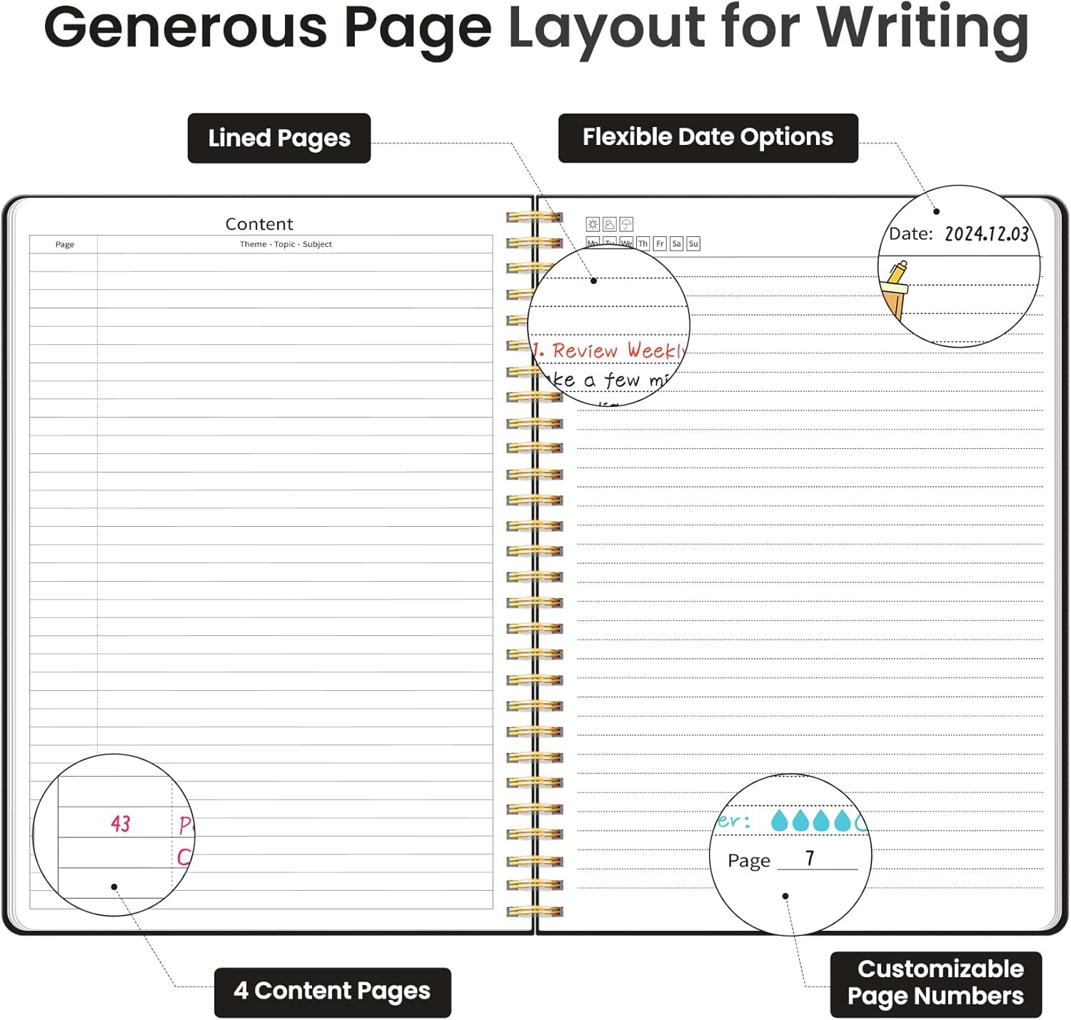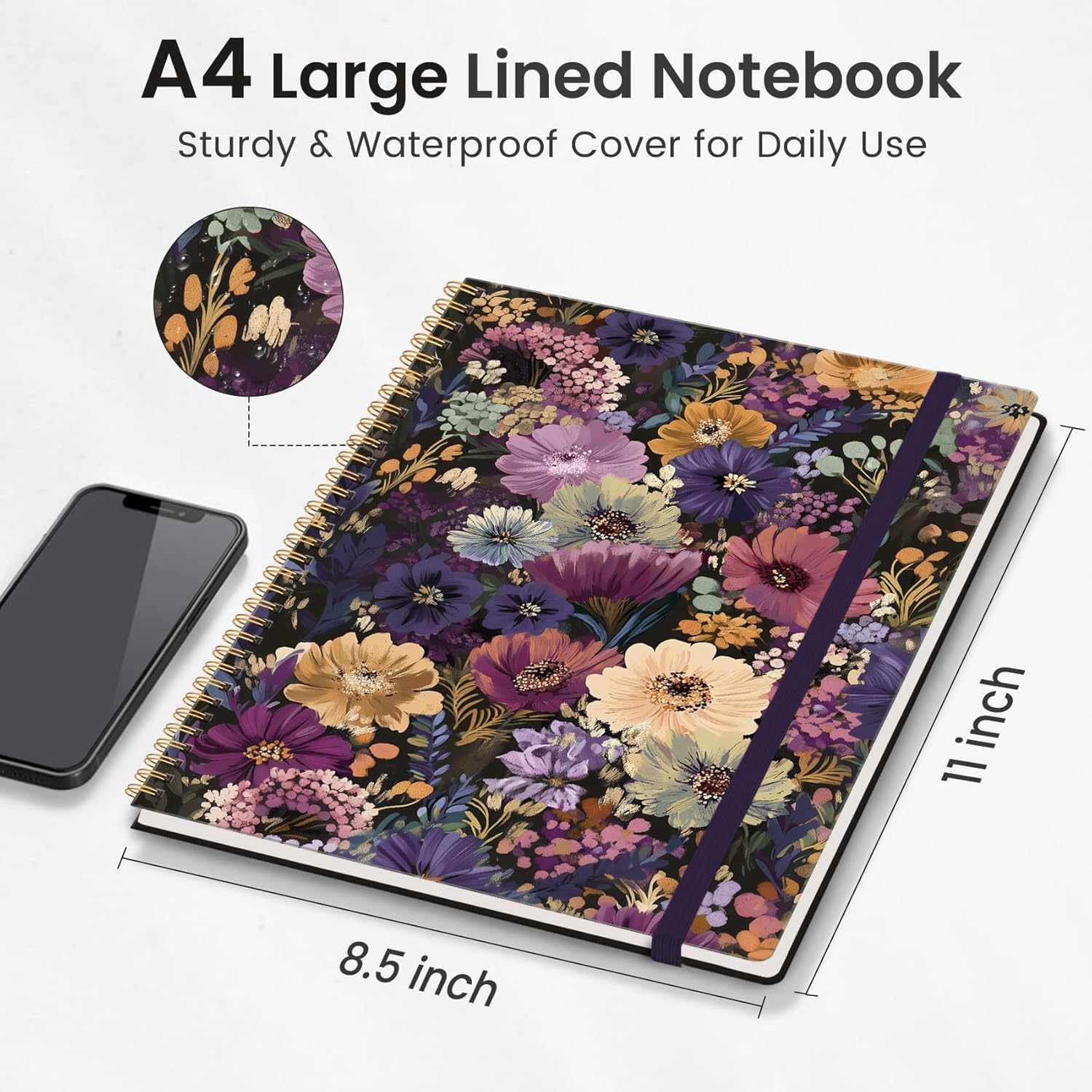 - Large A4 Spiral Notebook: Measuring 8.5" x 11" with standard 7mm college-ruled lines, this large A4 notebook offers ample space for detailed note-taking, journaling, and task management. Its spacious pages are perfect for capturing ideas, organizing thoughts, and managing projects—whether at work, school, or in your home office.