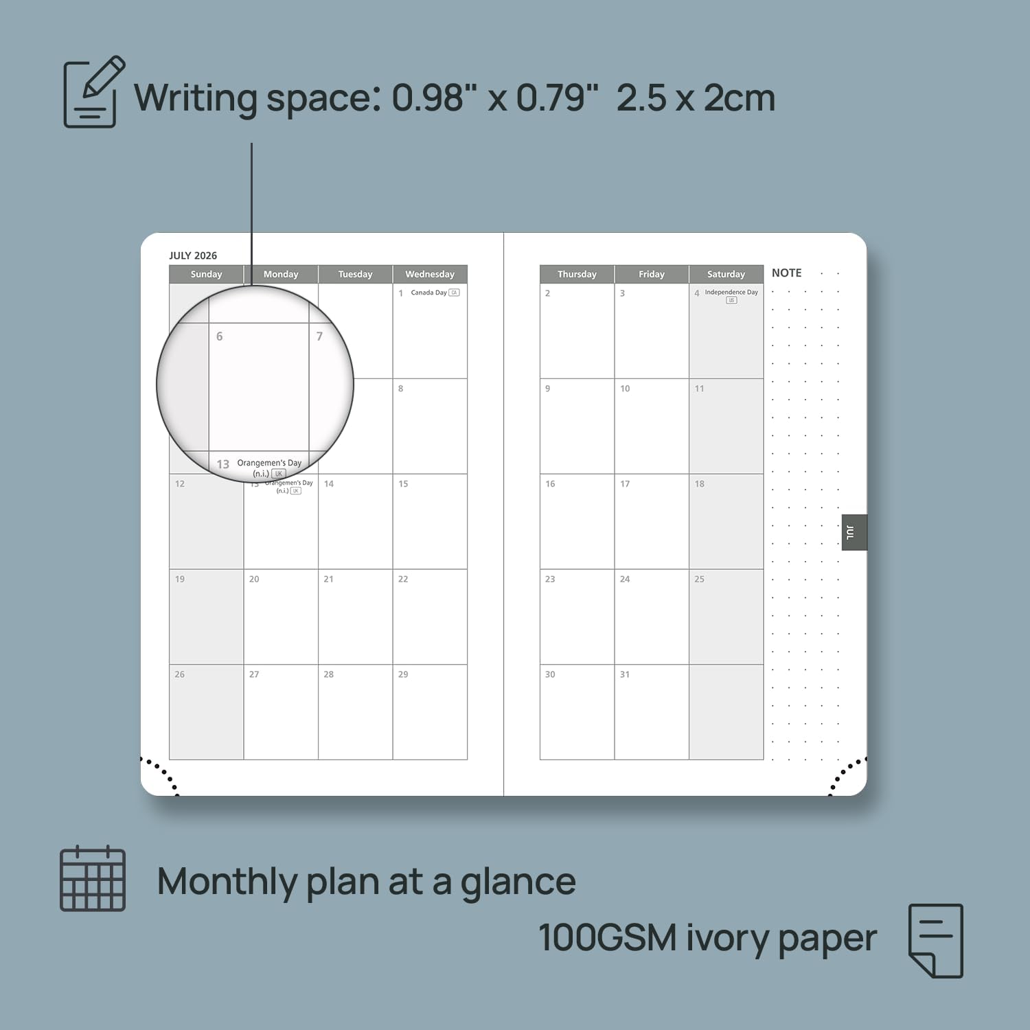- JAN 2026 - DEC 2026 WEEKLY PLANNER: This planner covers 12 months of 2026 so that you can track the whole year's schedule easily. The size is Pocket 4" x 6.25", It is roughly equal to a moblie phone in height but with a wider width, which is comfortable to carry and use.