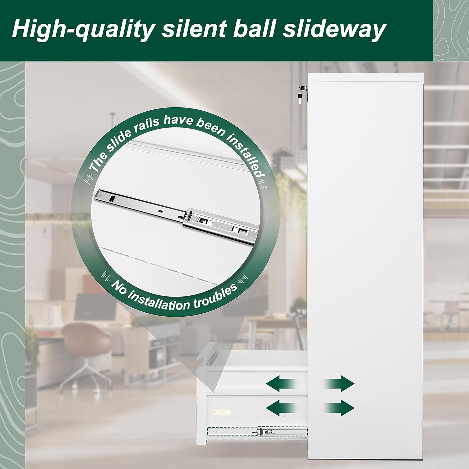 - ✔Heavy Duty File Cabinets -- white file cabinet is made of thick high-strength cold-rolled solid all steel material. Rugged and not easily deformed; Max load capacity up to 440 lbs. Coated with powder-coated construction makes white filing cabinet looks modern and stylish, can match your other office furniture perfectly while immune to corrosion, rust, waterproof and easy to clean.Ideal for long-term use!