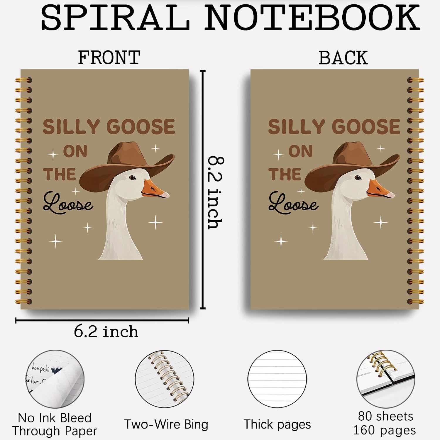 Funny Cowboy Goose Notebook, Goose on the Loose Journal, Vintage Western Journal, Trendy Farm Animal Hardcover Spiral Notebooks 5.5x8.3 Inch