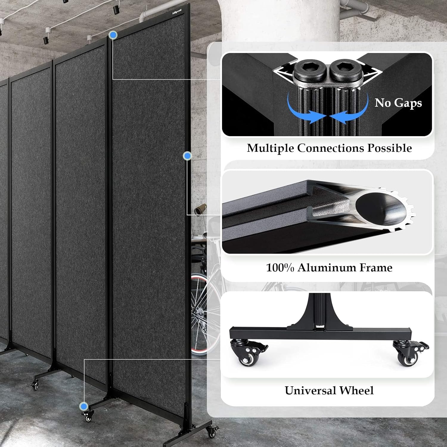 Upgrade Version Room Partition and Divider, Freestanding Rolling Dividers with Wheels,Office Privacy Screen Divider Wall,Classroom Felt Dividers,6'L* 6'7"H,3 Panel,Dark Grey