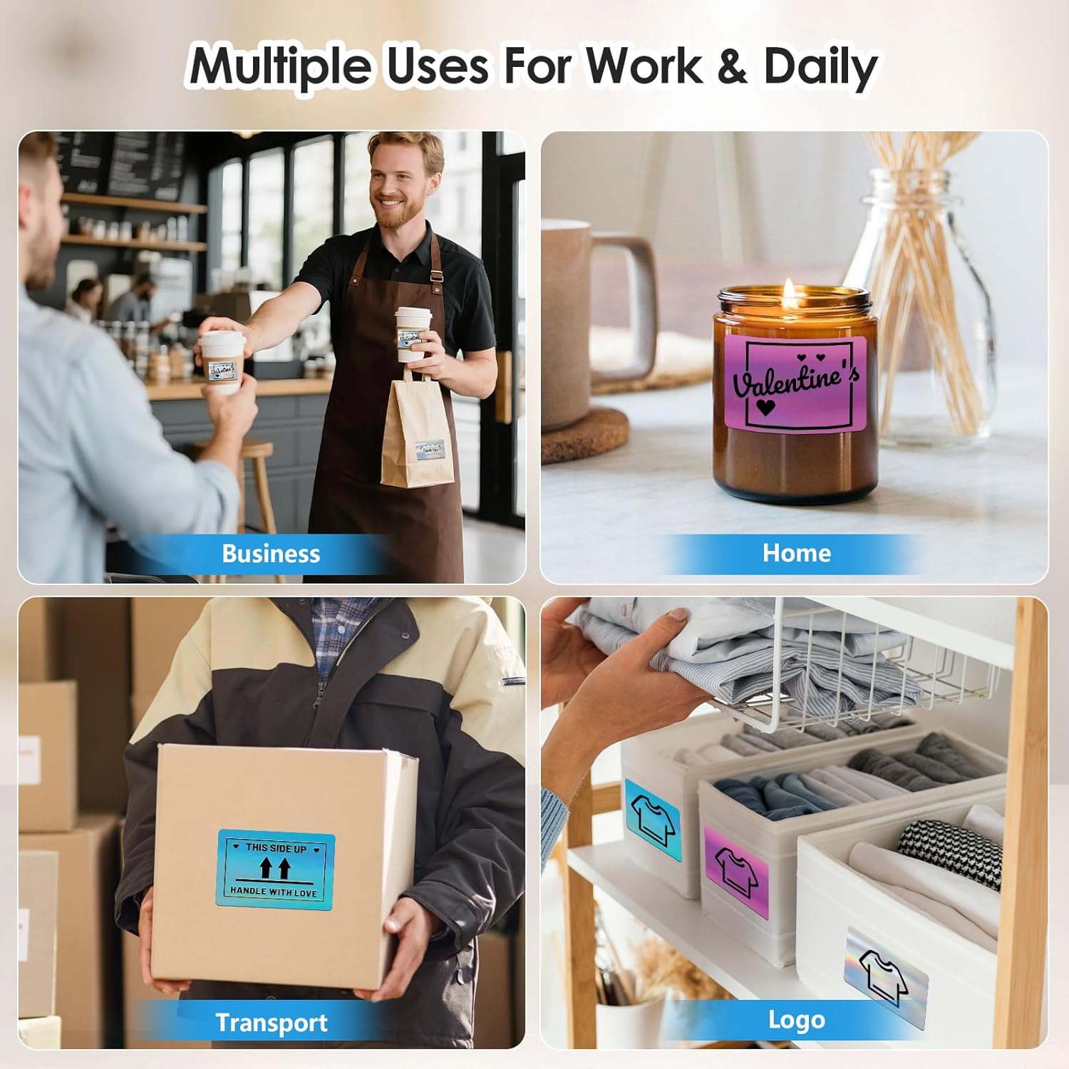 - Widely Use: Multi-purpose square labels are widely used in work and life. It can be used can be used for sorting and packaging, and also dress up holiday gifts, DIY, thank you card stickers, perfect for making addresses, barcodes, QR codes, name tags, price tags, kitchen labels, logo designs. Suitable for school, home, office, traveling, it can bring you a pleasant and convenient using experience in both work and life.