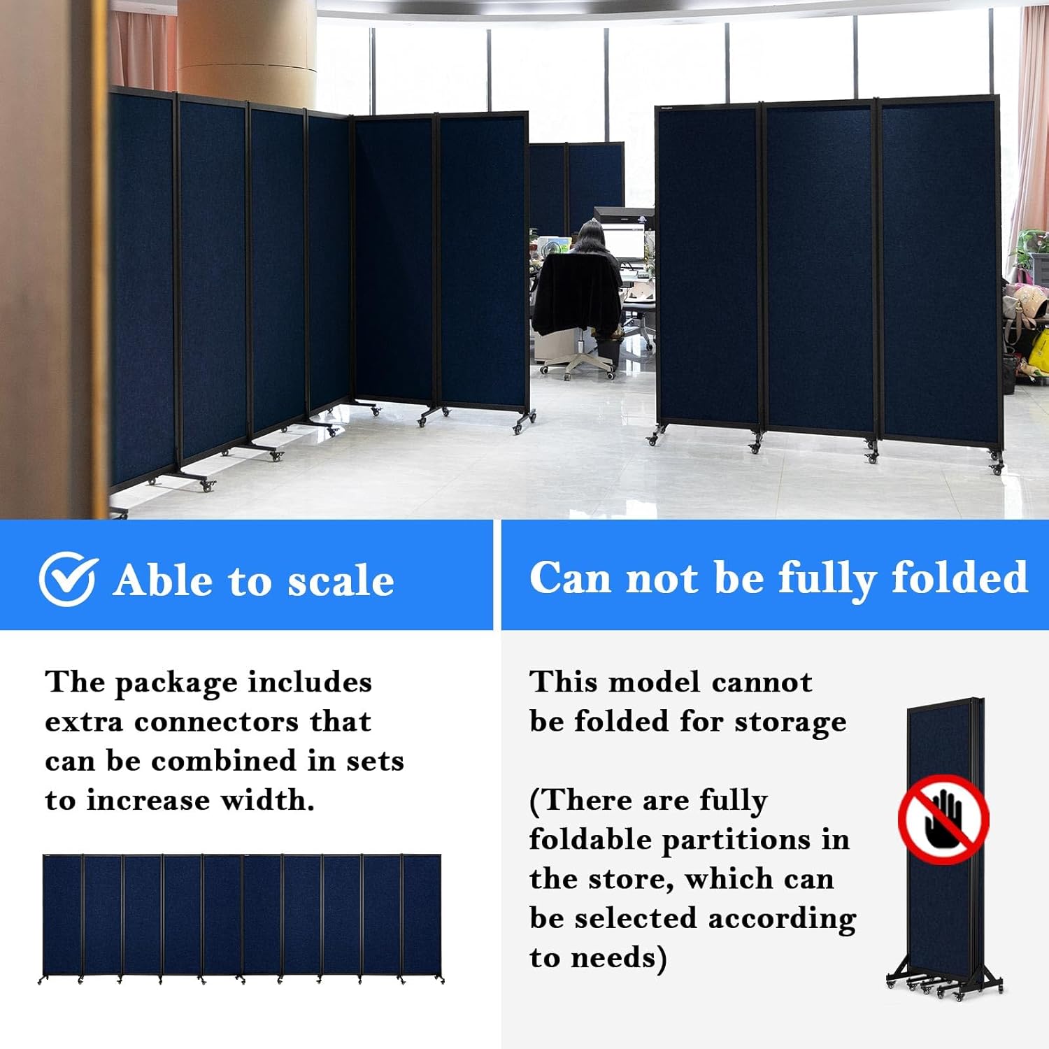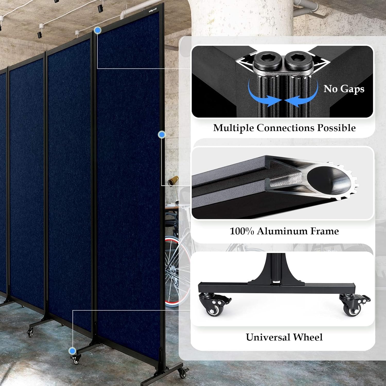 Upgrade Version Room Partition and Divider, Freestanding Rolling Dividers with Wheels,Office Privacy Screen Divider Wall,Classroom Felt Dividers,12'2"L* 6'7"H,6 Panel,Blue