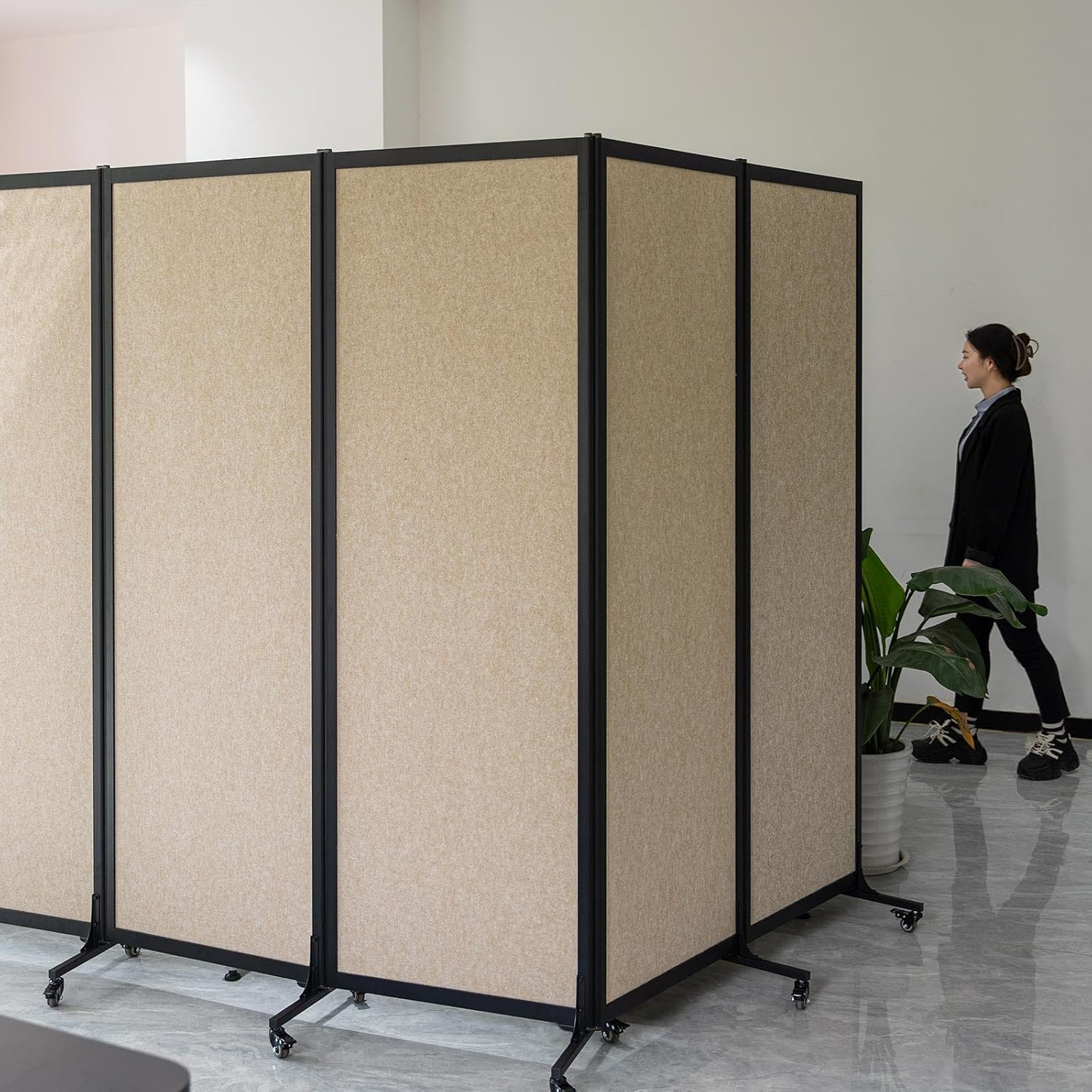 Upgrade Version Room Partition and Divider, Freestanding Rolling Dividers with Wheels,Office Privacy Screen Divider Wall,Classroom Felt Dividers,12'2"L* 6'7"H,6 Panel,Beige