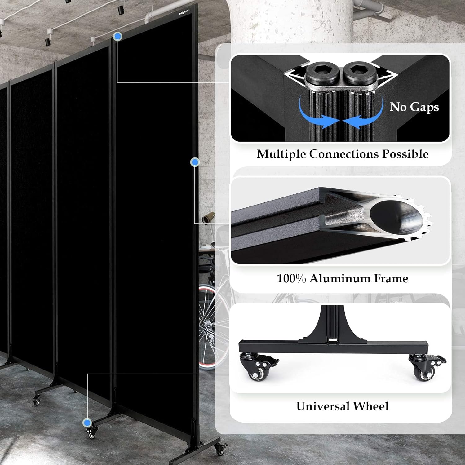 - Portability: The screen is equipped with high-quality universal wheels, you can easily move the partition wall to anywhere. It is also equipped with a brake function, so it can stand firmly where you need it