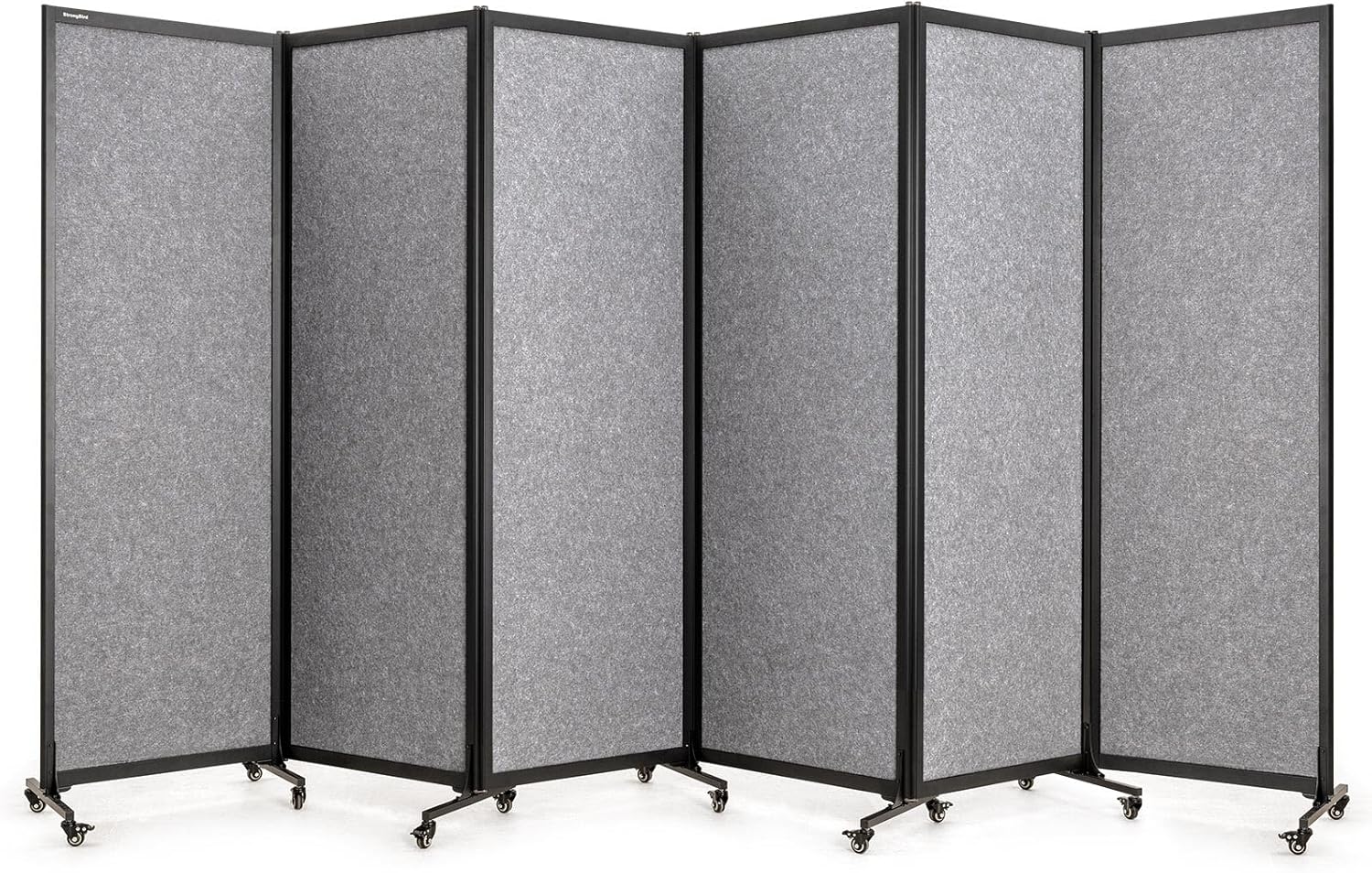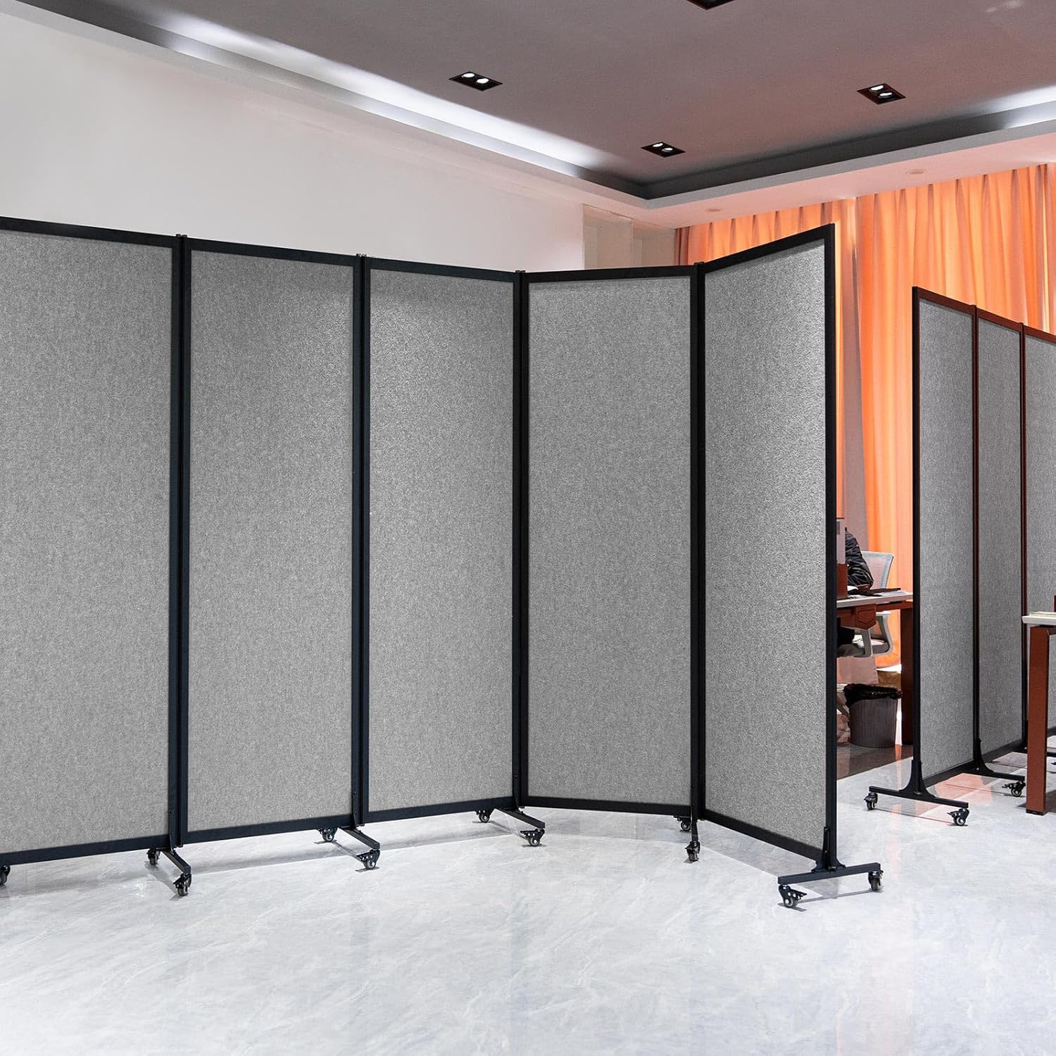Upgrade Version Room Partition and Divider, Freestanding Rolling Dividers with Wheels,Office Privacy Screen Divider Wall,Classroom Felt Dividers,12'2"L* 6'7"H,6 Panel,Light Grey