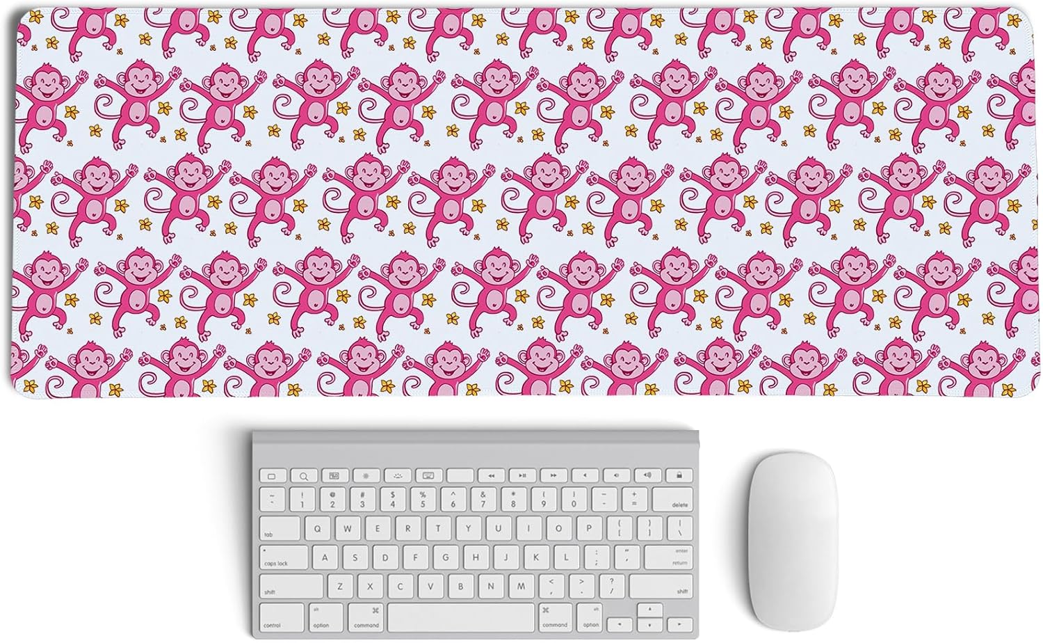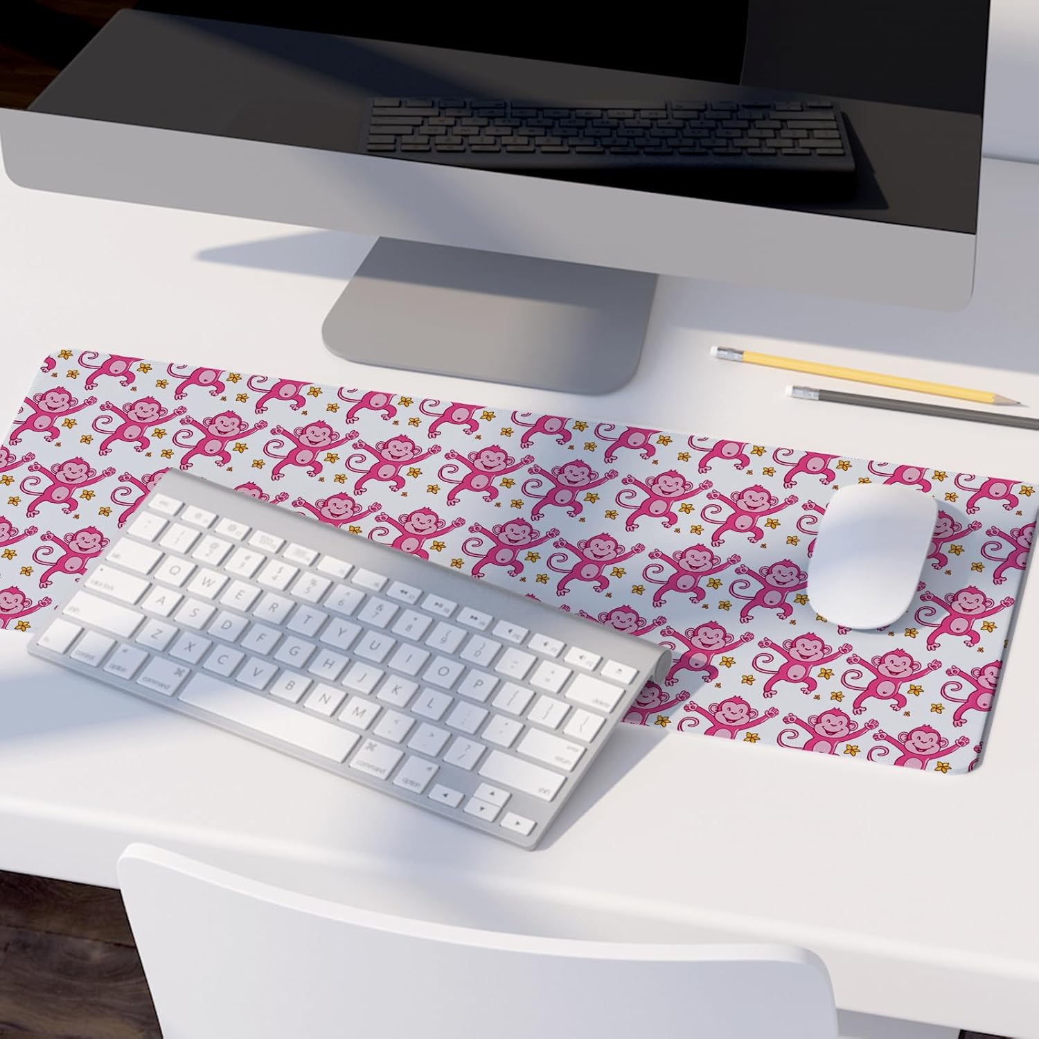 Cute Pink Monkey Mouse Pad,Pink Monkeys Decor for Girly Room Desk Mouse Pad,Preppy Girly Large Desk Mat for Dorm Home Office,Teen Girl Monkey Gifts,31.5x11.8 Inch