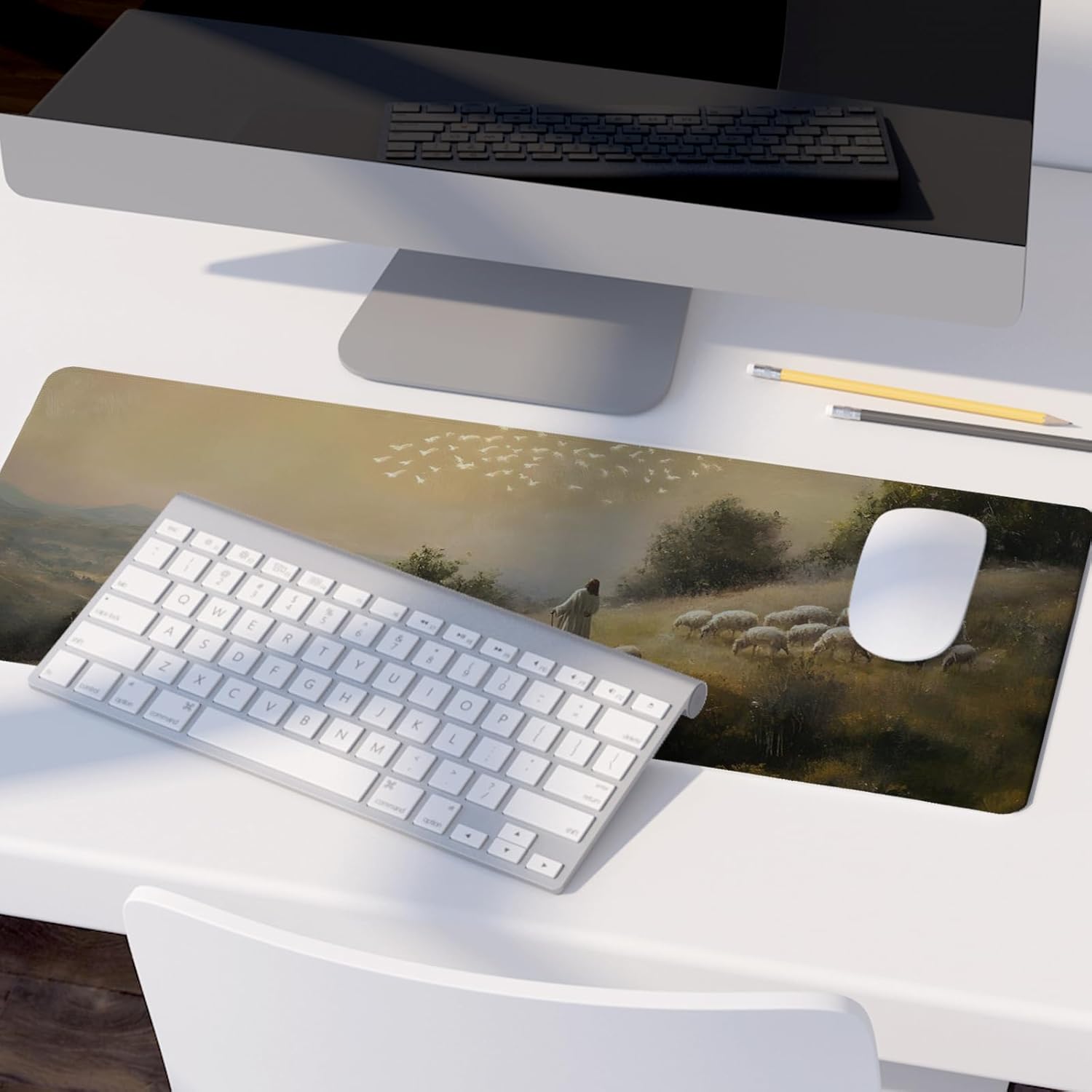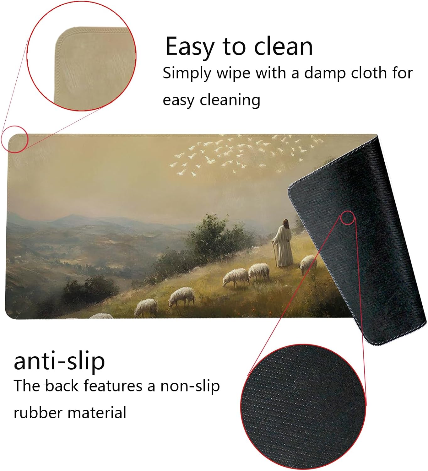 Retro Christian Themed Mouse Pad,Jesus Religious Mouse Pad,Big Large Vintage Easter Desk Mat,Jesus The Good Shepherd,Religious Gifts Christian Gifts for Women,Christian Room Decor,31.5x11.8In