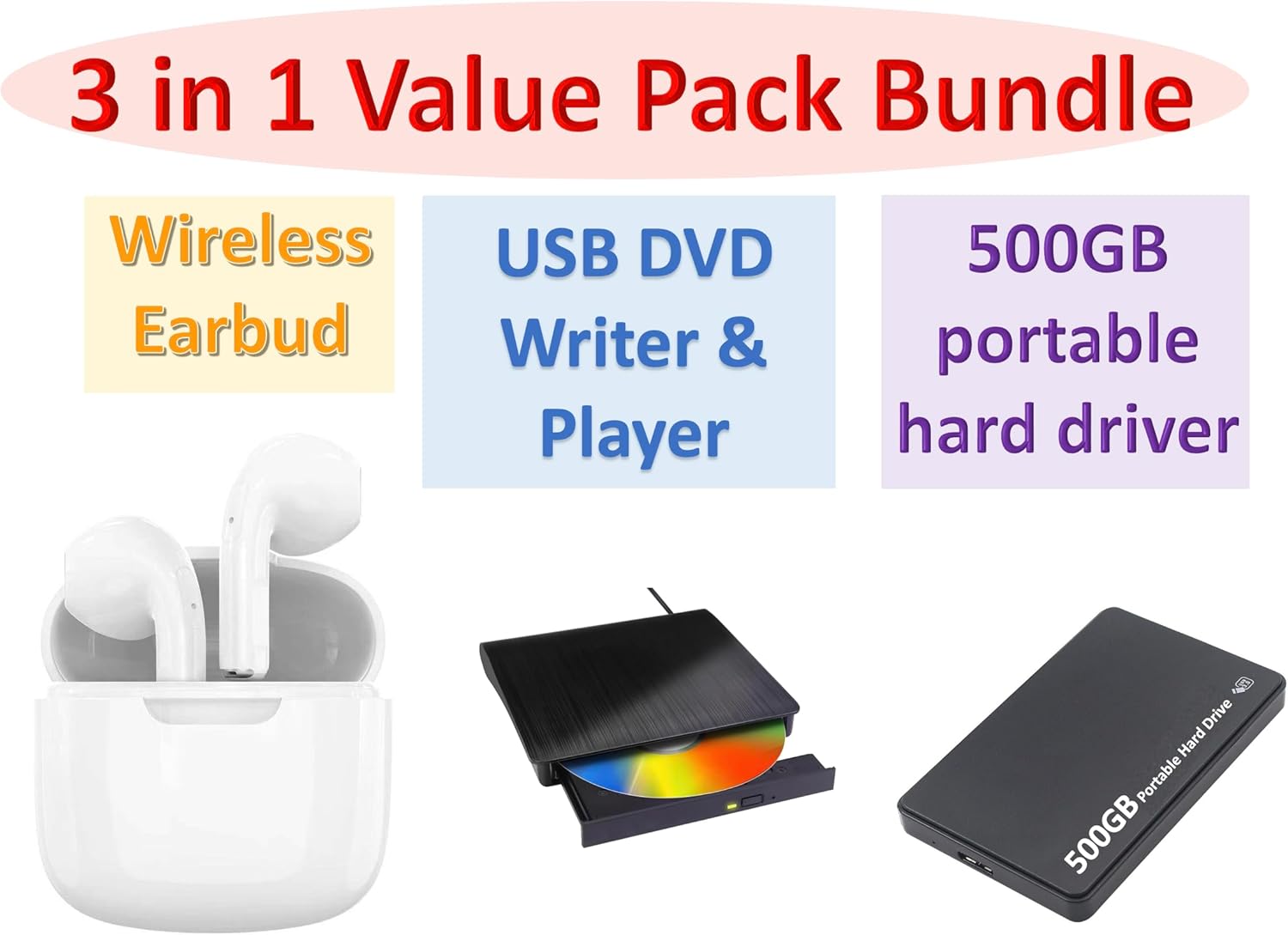 - ăAuthorized HubxcelAccessoryă19.30 in (L) x 8.05 in (W) x 14.99 in (H), 12.56 lbs; 2x SuperSpeed USB Type-A / 2x 2.0 USB Type-A / 1x HDMI Out / 1x Multi-format SD Media Card / 1x headphone/microphone combo; Wi-Fi 6 and Bluetooth; Integrated 720p Webcam; Natural Silver; HubxcelAccessory includes wireless earpods, Portable External DVD+/-RW Drive Player + 500GB portable hard driver. USB white wired keyboard and mouse combo included.