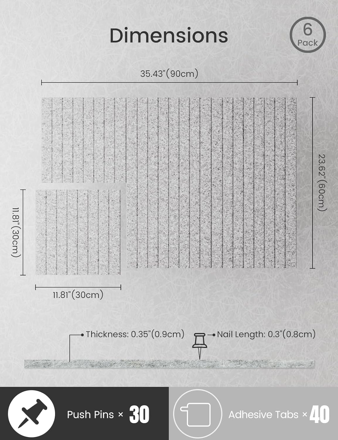 - 【Felt Bulletin Board – 6 Tiles Included】 Includes 6 felt cork boards (each 11.8" x 11.8") with 30 Pushpins that can be freely arranged into a large display board. Perfect for showcasing your schedules, ideas, and creations in home or office settings.
