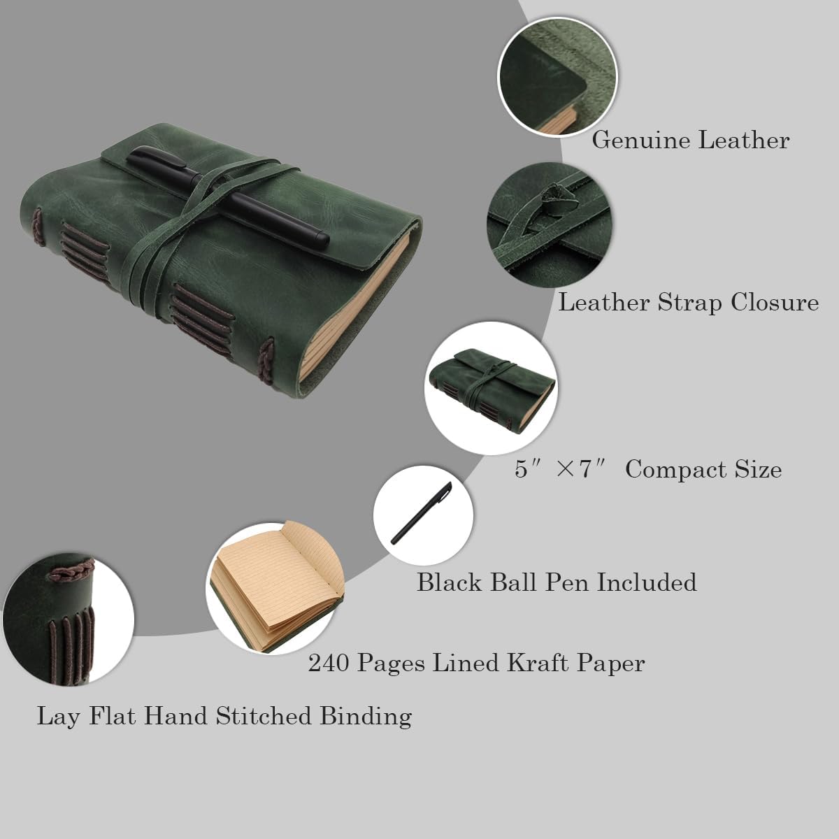 - LEATHER BOUND NOTEBOOK PREMIUM QUALITY PAPER – Every green notepad is filled with 120 sheets of 100gsm weight, 6.5 mm ruled, 2-sided kraft paper that fits most pens (Refill Paper: B0CNK6FPCF)
