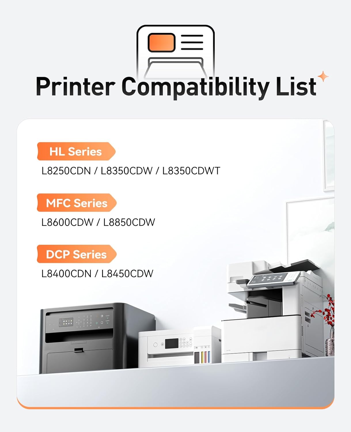 - Compatible Printers: Compatible with Brother DCP-L8400CDN, DCP-L8450CDW, HL-L8250CDN, HL-L8350CDW, HL-L8350CDWT, MFC-L8600CDW, MFC-L8850CDW Series Printer.