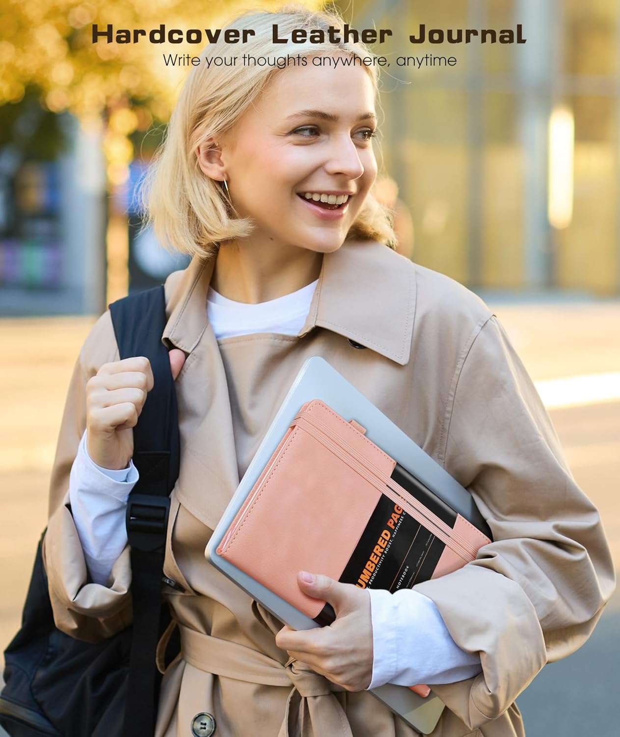 Lined Journal Notebook for Women Men, 256 Numbered Pages Hardcover Leather Journals for Writing, A5 Journaling Notebooks, College Ruled Journal for Business Work School 5.75" x 8.38" Pink leather
