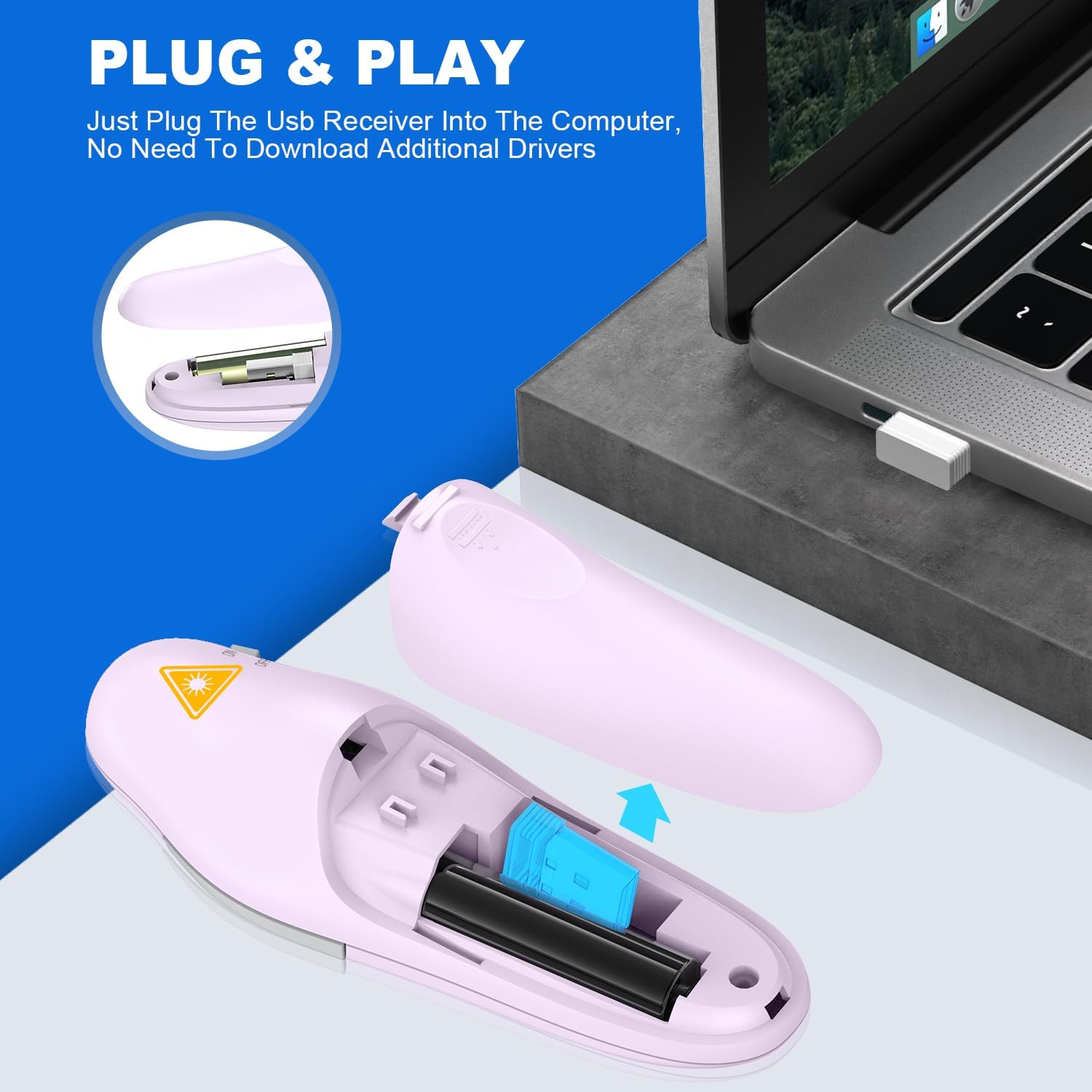 - Easy to Plug & Play: Designed for easy use, this wireless presenter requires no software installation. Just insert a AAA battery (not included), plug the 2.4GHz USB receiver into your computer, and youβre all set. Itβs a must-have for classrooms, boardrooms, and beyond