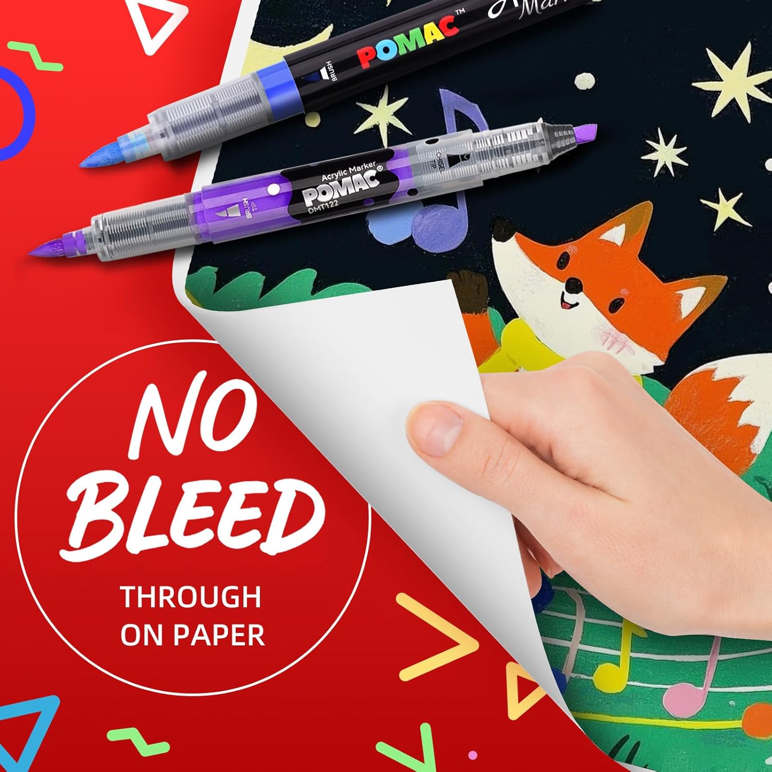 - Vibrant Colors & Smooth Flow: POMAC water-based acrylic markers feature novel, bright and vivid colors that provide smooth, your creativity knows no bounds. Enjoy a wide range of hues and keep your markers going for years to come. Liquid acrylic markers with a paint-like ink that won't bleed through paper and ensuring consistent, smooth application with every stroke for vibrant, flawless results.