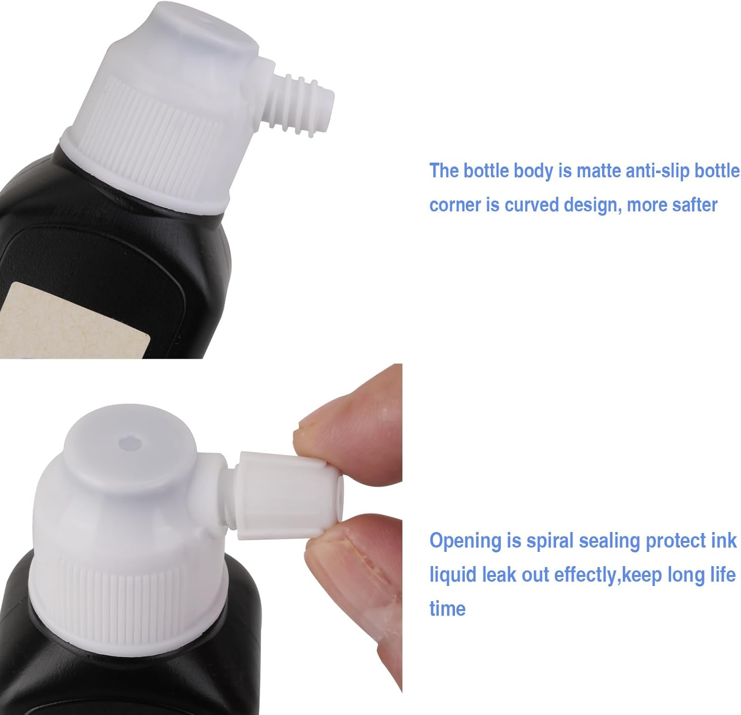 - Ergonomic non-slip bottle + spiral-sealed liquid ink opening. Curved corners prevent tipping; secure storage for messy calligraphy ink sessions.